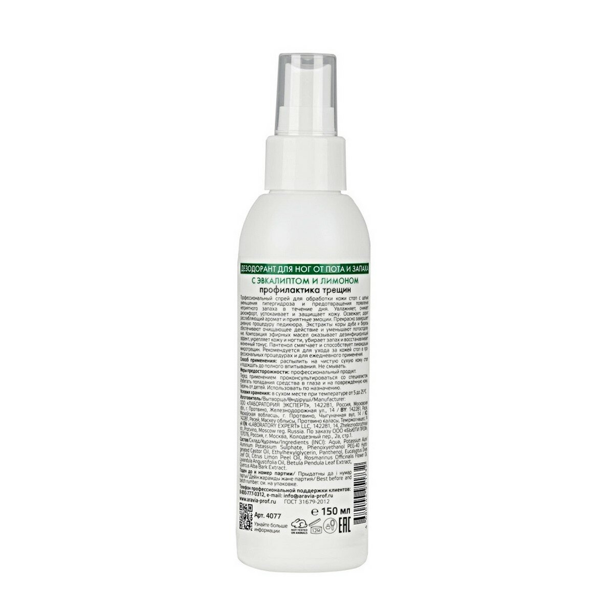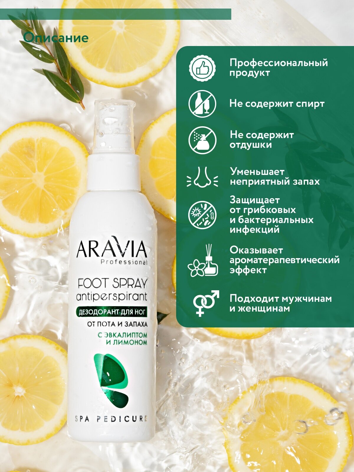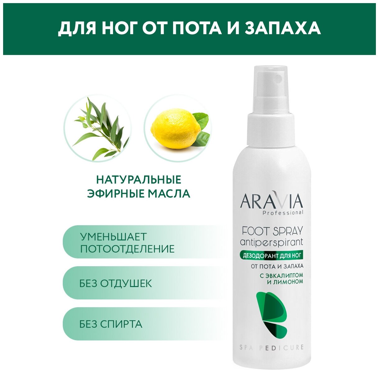Дезодорант для ног от пота и запаха с эвкалиптом и лимоном 150 мл ARAVIA PROFESSIONAL (ЭХ99989441335)