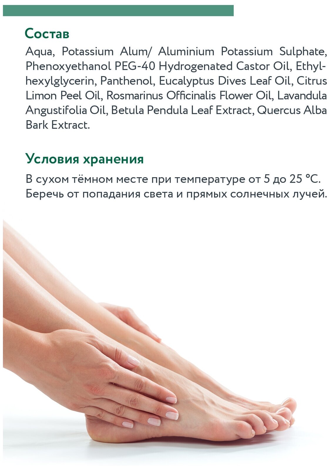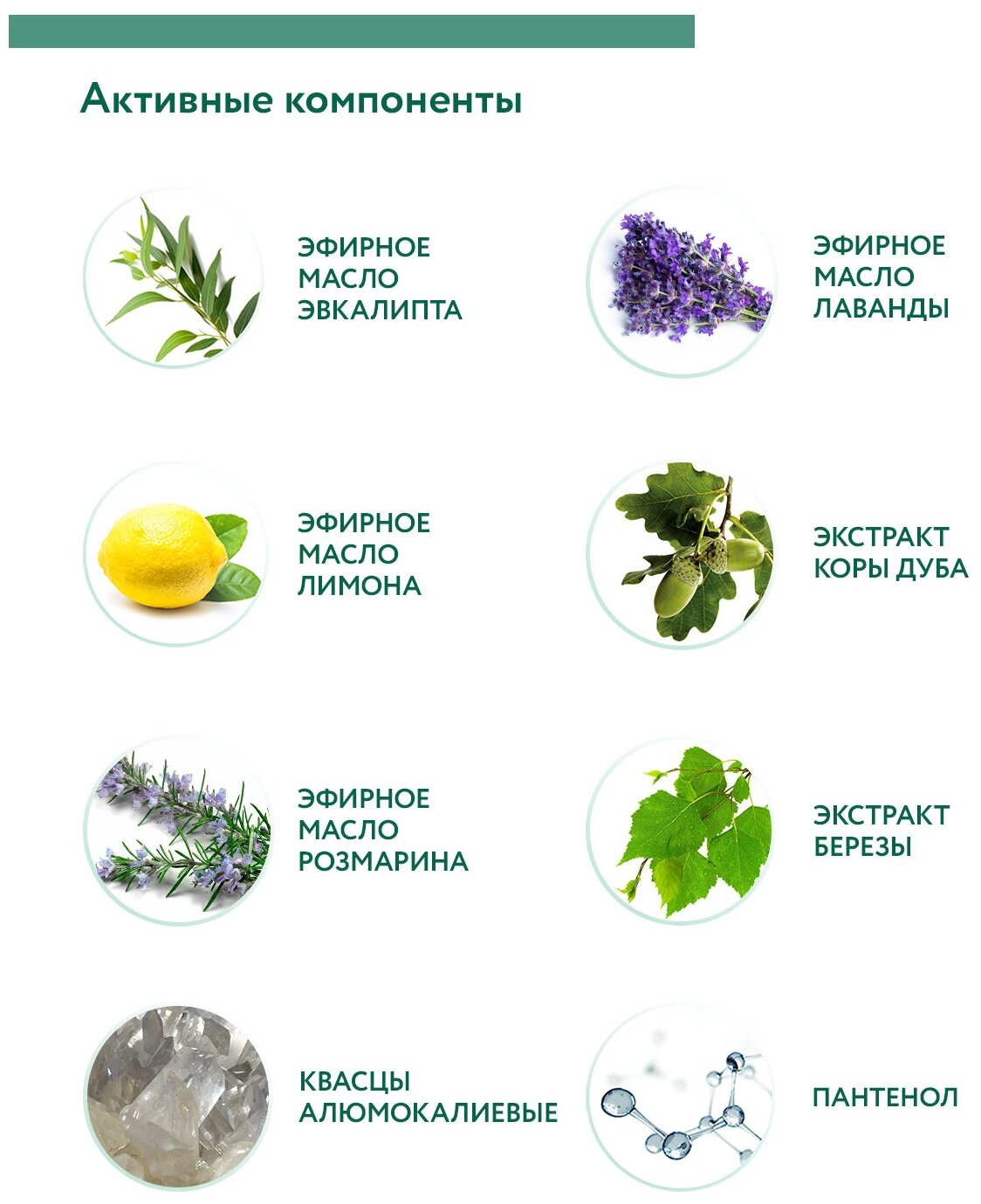 | Состав | Aqua, Potassium Alum, Aluminium Potassium Sulphate, Phenoxyethanol PEG-40 Hydrogenated Castor Oil, Ethylhexylglycerin, Panthenol, Eucalyptus Dives Leaf Oil, Citrus Limon Peel Oil, Rosmarinus Officinalis Flower Oil, Lavandula Angustifolia Oil, Betula Pendula Leaf Extract, Quercus Alba Bark Extract |