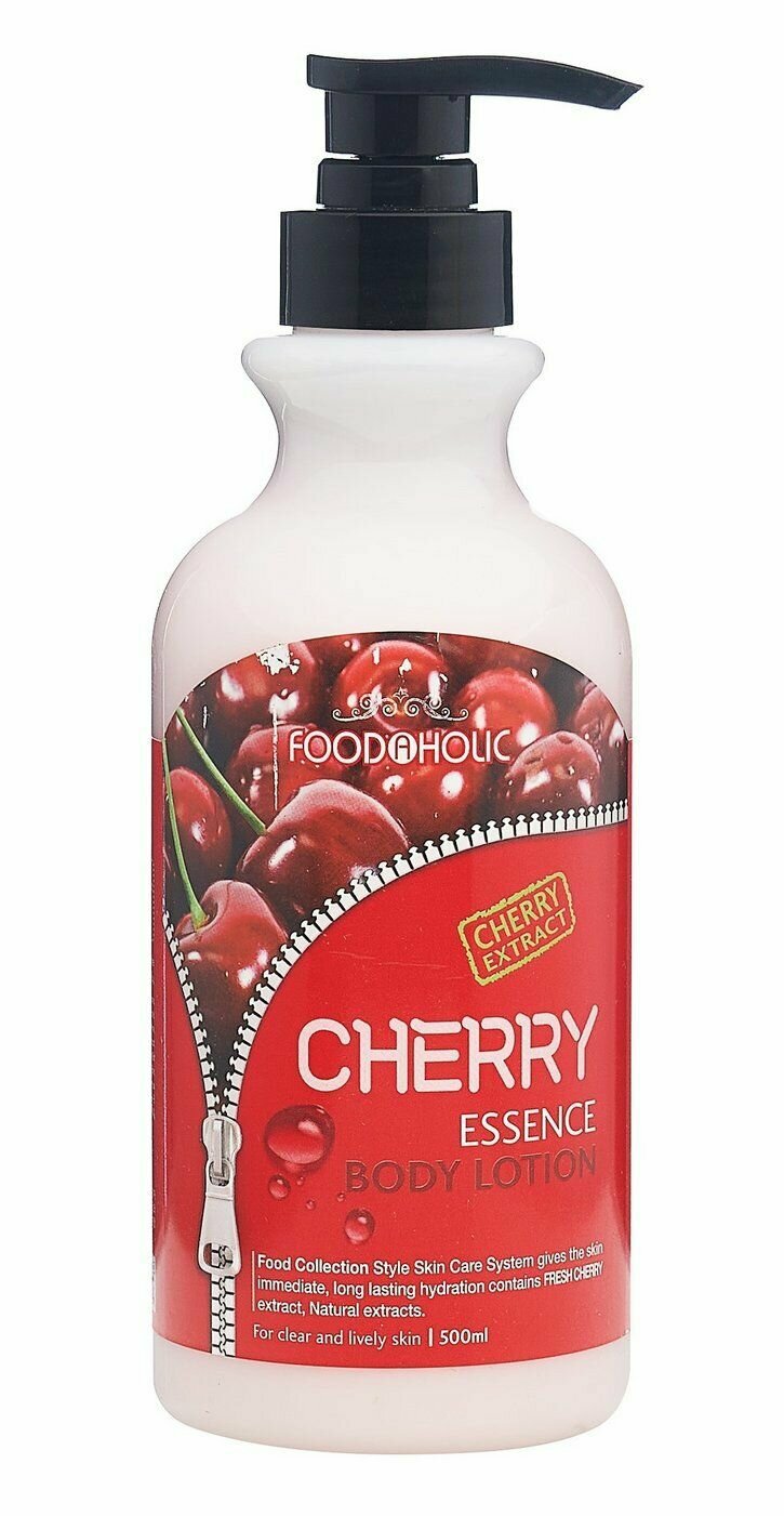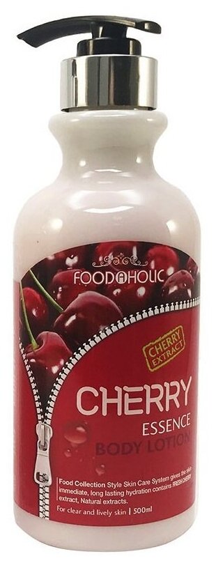Лосьон для тела FoodaHolic Essense Body Lotion Cherry с экстрактом вишни в основе — смягчает, интенсивно увлажняет и питает кожу, насыщает ее витаминами, придает гладкость и повышает упругость. Формула с биоактивными веществами базилика, ромашки и зеленого чая — успокаивает раздражения и зуд, уменьшает сухость, шелушение и покраснения, защищает от негативного воздействия внешних факторов. Нежная текстура быстро впитывается, не оставляя липкой пленки. Экономично расходуется благодаря удобному дозатору и объему 500 мл Подходит для всех типов кожи.Способ применения: массажными движениями нанести немного средства на чистую сухую кожу тела.