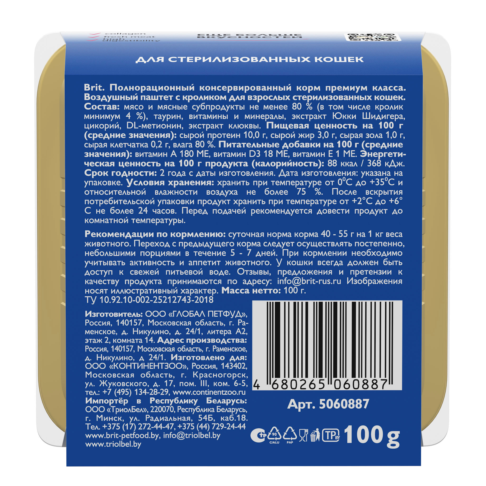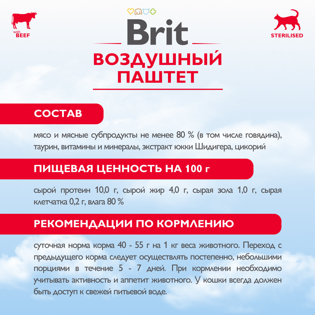 Brit воздушный паштет для стерилизованных кошек (Говядина 100 г.)