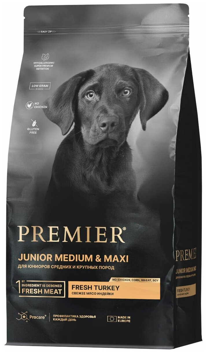 PREMIER Dog Medium&Maxi Junior Turkey Корм сух.индейка д/юниоров средних и крупных пород 3кг (51379)