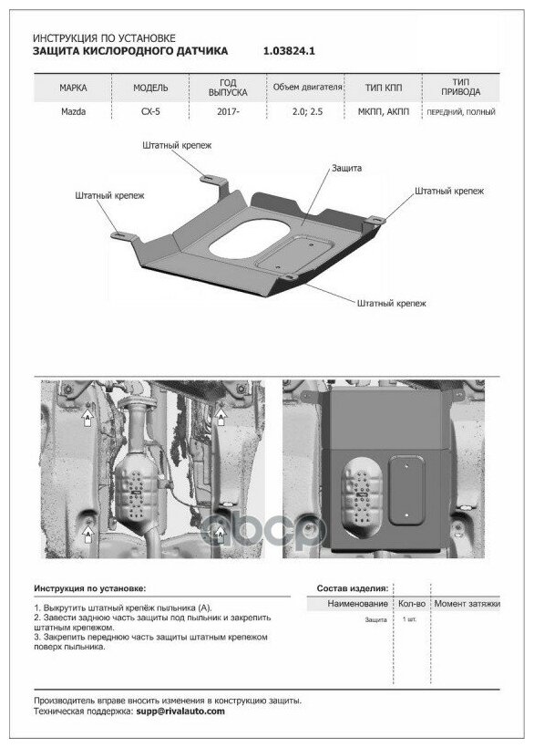 Сервис сравнения цен СкидкаГИД предлагает сравнить цены на товар «Защита кислородного датчика АвтоБРОНЯ для Mazda CX-5 2017- (1.03824.1)»