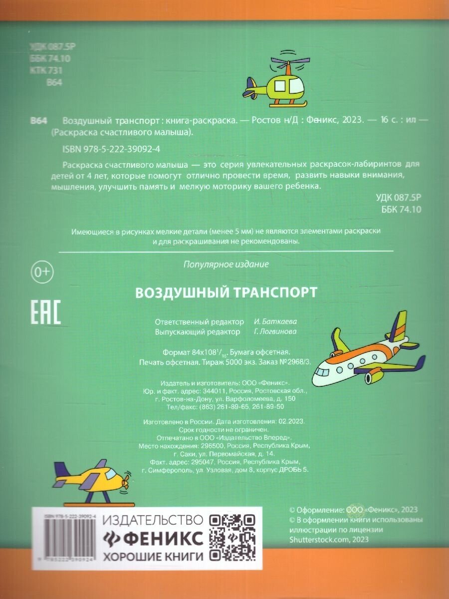 Воздушный транспорт. Книга-раскраска (Баткаева И.); Феникс, 2023