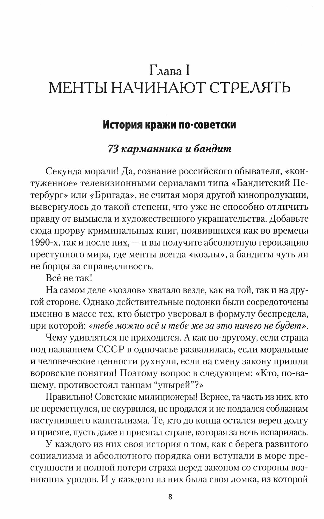 Как? Об этом и рассказ, где нет выдуманных героев и сюжетов. Всё реально, жёстко, правдиво, местами иронично. Засады и погони, задержания и допросы, подставы от своих и помощь от чужих, захват Минусинской тюрьмы и едва не вспыхнувший бой между милиционерами в аэропорту Норильска. Свидетельства от первого лица, ранее закрытая информация, плюс факты, моменты, подробности, нюансы того времени, о которых никто не знал и не догадывался. Гремучая смесь в одном флаконе, содержание которого вы можете проглотить одним читательским глотком.