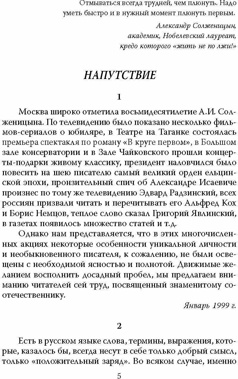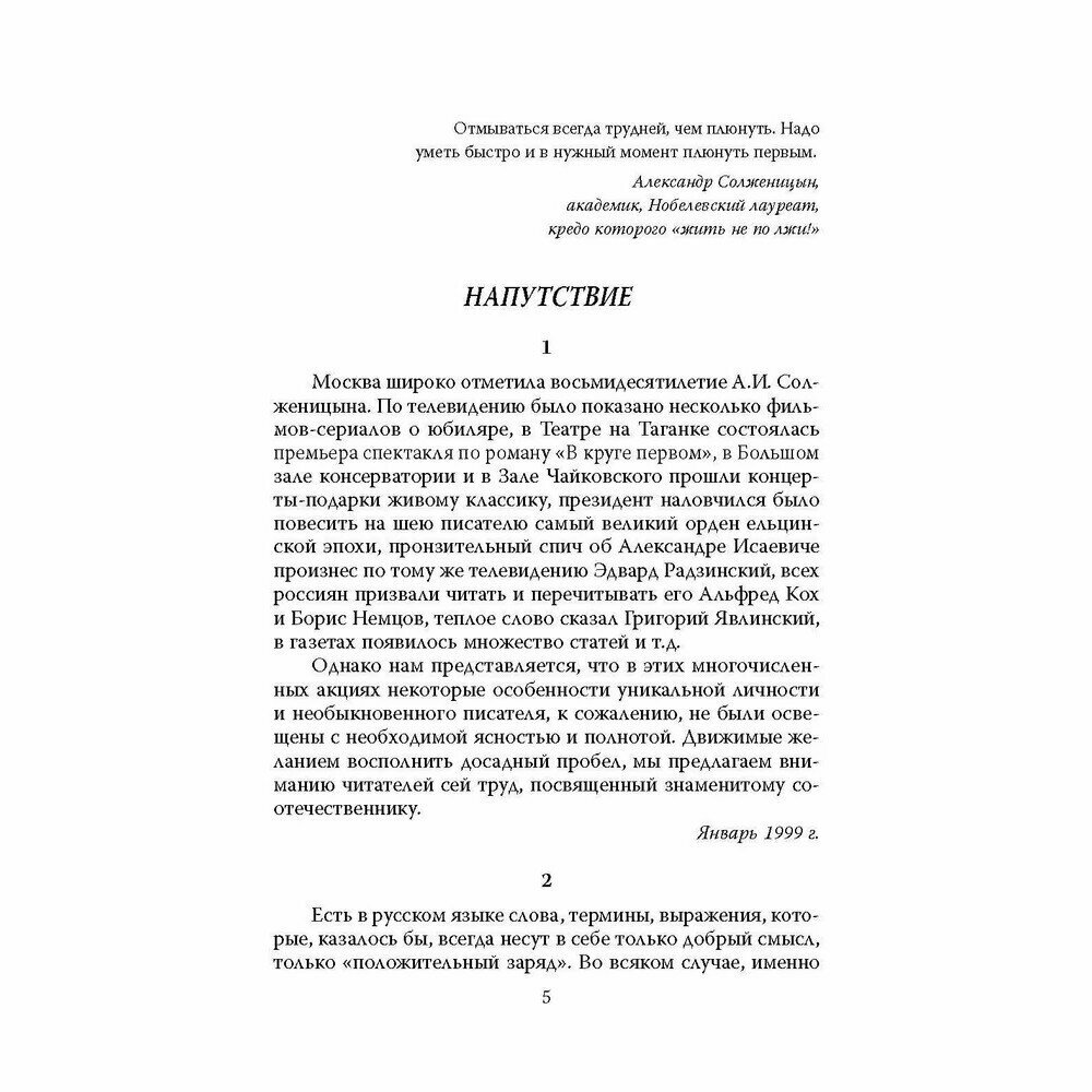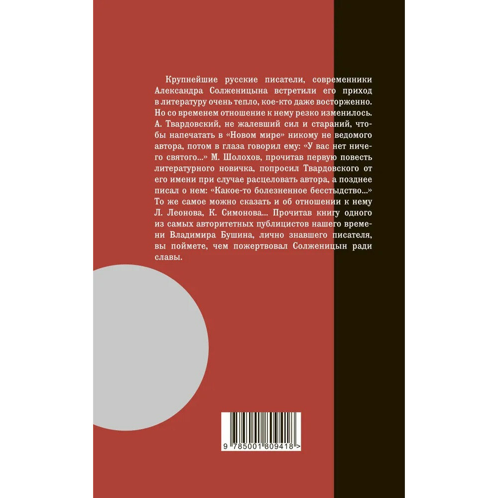 Крупнейшие русские писатели, современники Александра Солженицына встретили его приход в литературу очень тепло, кое-кто даже восторженно. Но со временем отношение к нему резко изменилось. А. Твардовский, не жалевший сил и стараний, чтобы напечатать в "Новом мире" никому не ведомого автора, потом в глаза говорил ему: "У вас нет ничего святого…" М. Шолохов, прочитав первую повесть литературного новичка, попросил Твардовского от его имени при случае расцеловать автора, а позднее писал о нем: "Какое-то болезненное бесстыдство…" То же самое можно сказать и об отношении к нему Л. Леонова, К. Симонова… Прочитав книгу одного из самых авторитетных публицистов нашего времени Владимира Бушина, лично знавшего писателя, вы поймете, чем пожертвовал Солженицын ради славы.