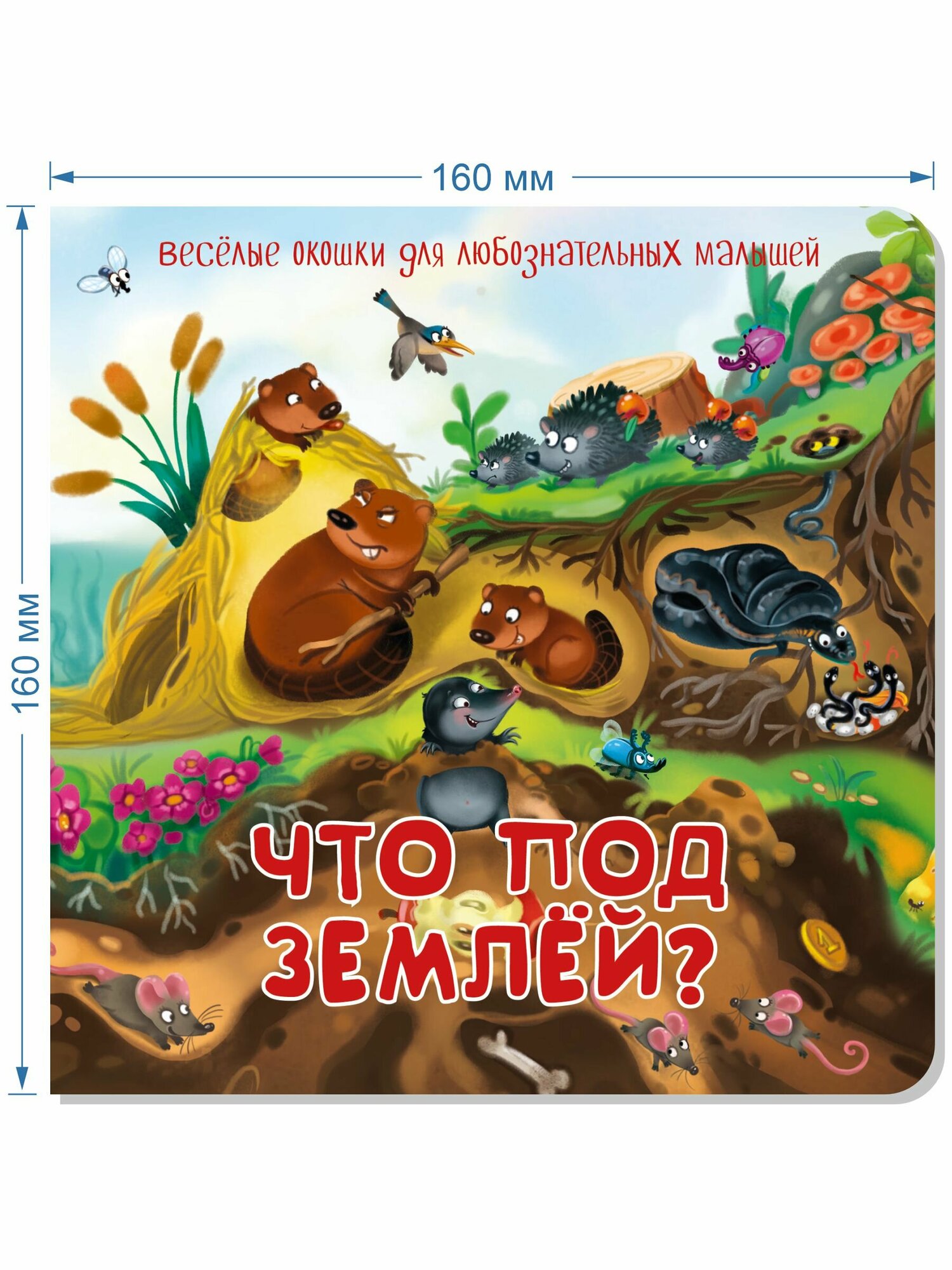 Под землёй спрятано столько интересного! Не верите? Скорее открывайте окошки! Герой книжки забавный любознательный крот покажет вам, какие корнеплоды растут в огороде, что находится внутри большого муравейника, норы каких лесных зверей спрятаны под корнями деревьев. А ещё вы узнаете, зачем экскаватор роет яму, что находят под землёй археологи и зачем поезда метро уходят в тоннели под городскими улицами.