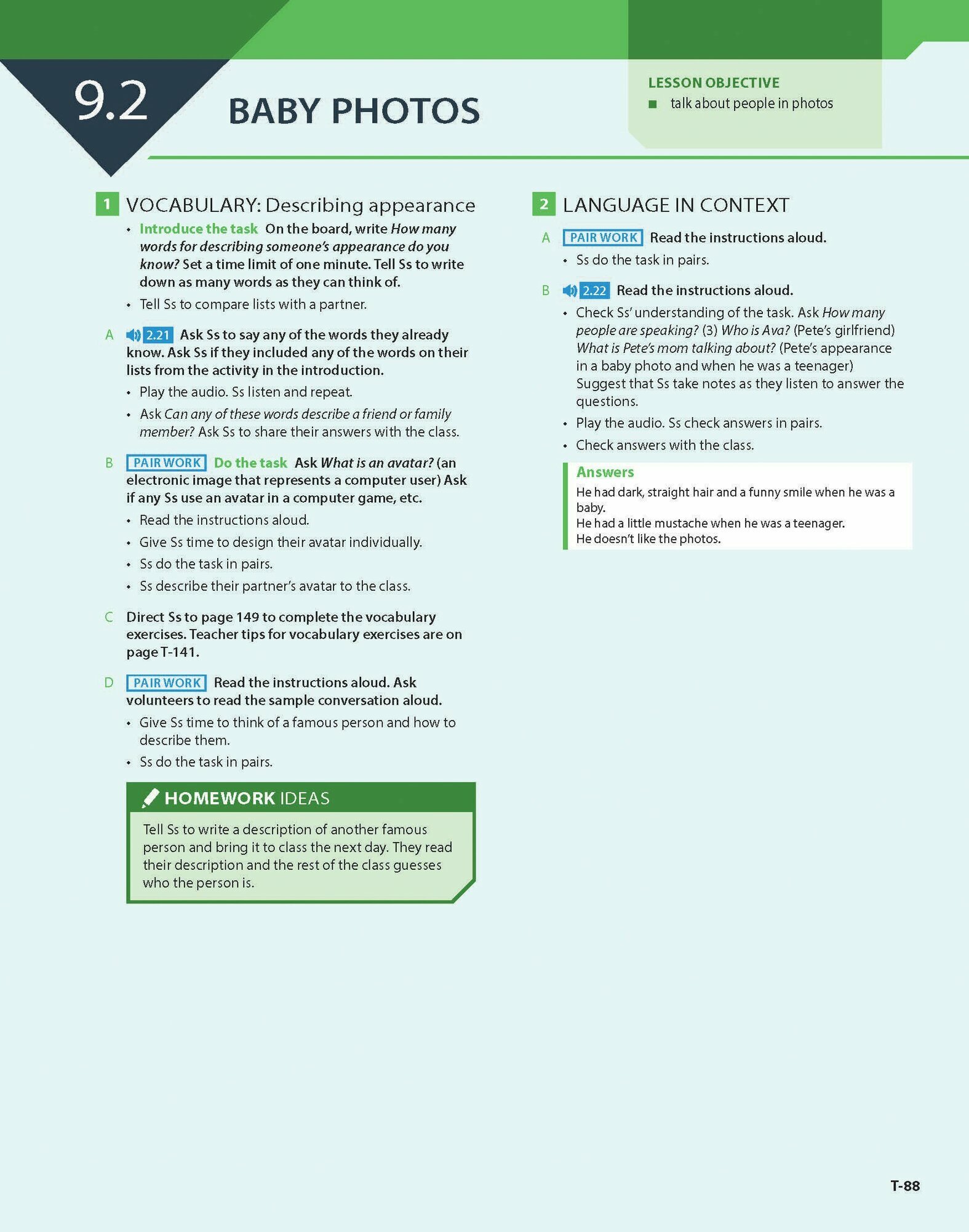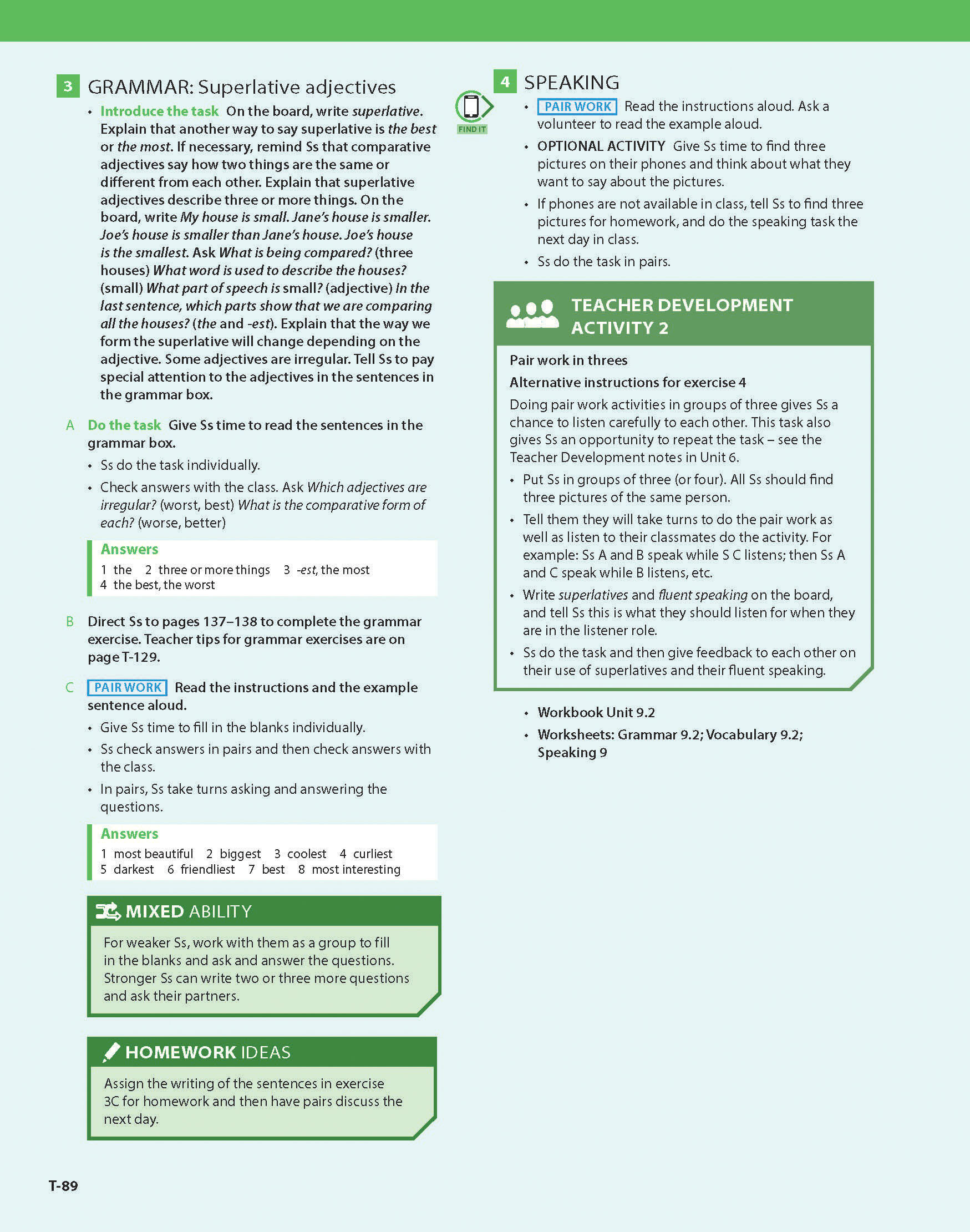 This interleaved Teacher's Edition with Test Generator Level 2 provides page-for-page teaching notes corresponding with the Student's Book. It includes answer keys for the Student's Book and Workbook, plus photocopiable worksheets for further practice of grammar, vocabulary, and speaking. A teacher development syllabus is woven throughout, providing opportunities to incorporate new teaching techniques in an easy and time-efficient way. In addition, suggested readings offer teachers the opportunity to expand their knowledge of the theories behind each technique. Test Generator provides ready-made unit tests, mid-level and end of level tests, in addition to a test-generating tool for creating bespoke tests.