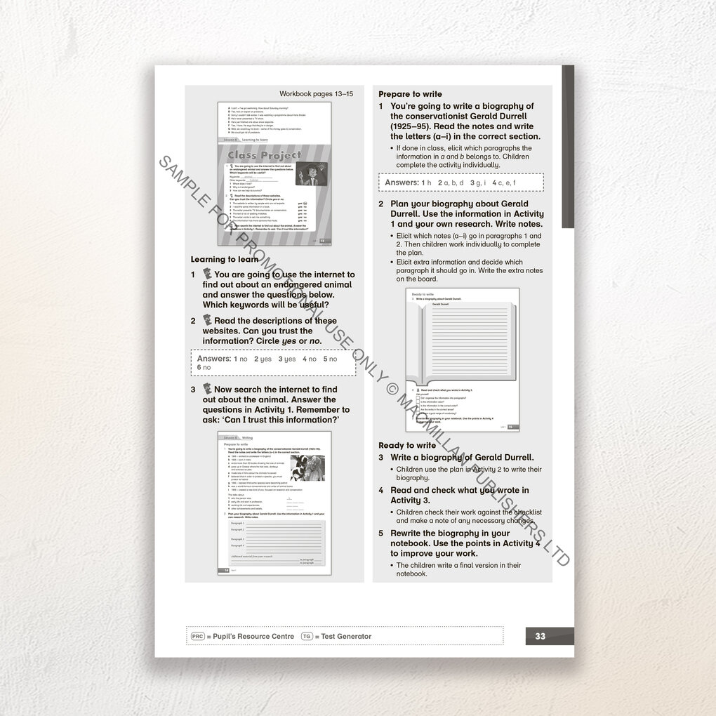 The Teacher's Book includes a flexible Teacher's eBook to allow for on screen lesson preparation, access to the Teacher's Resource Centre, Presentation Kit, Test Generator and digital student components. and Test Generator. The Teacher's Book includes lesson notes, lesson plans, teacher tips and answer keys.