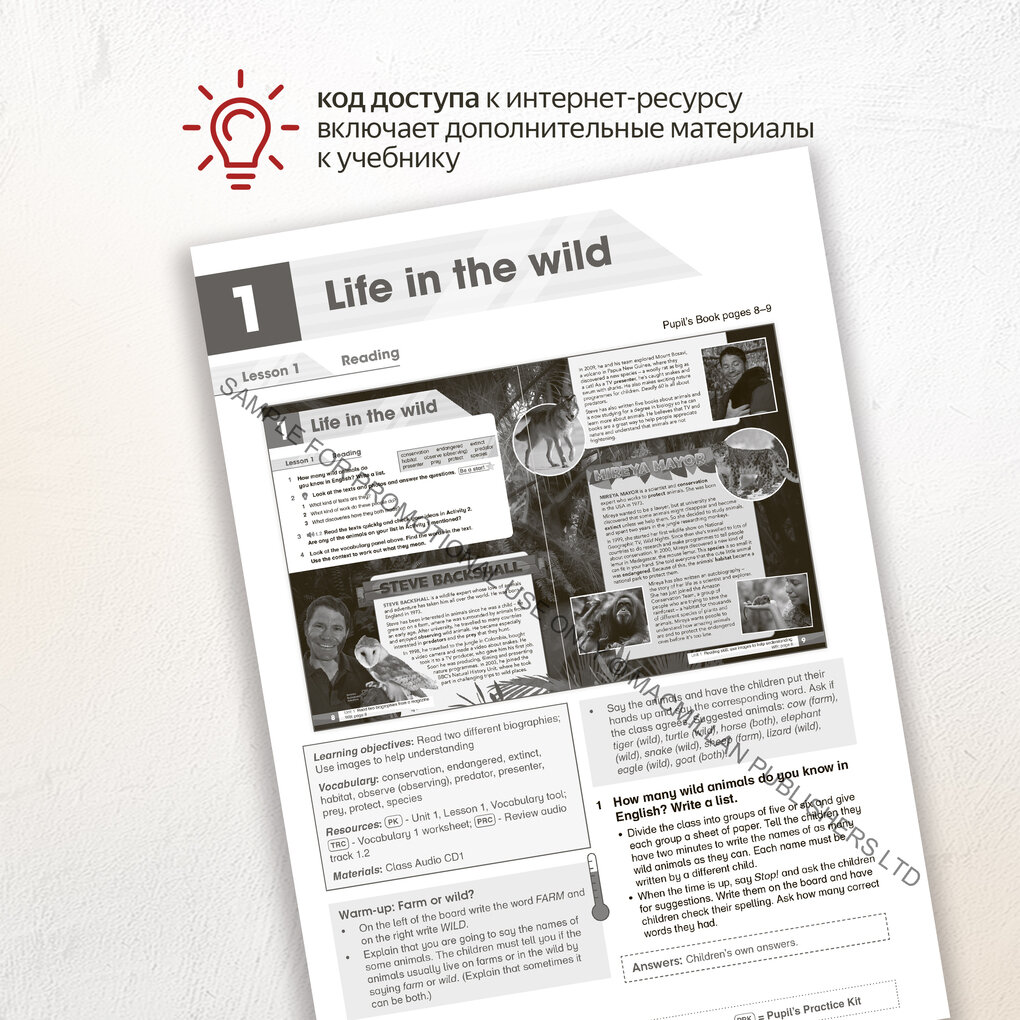 Книга для учителя включает в себя гибкое электронное пособие для учителя, позволяющее готовить и проводить уроки на экране, дающее доступ к базе материалов для учителей, комплекту для презентаций, генератору тестов и цифровым компонентам для учеников.