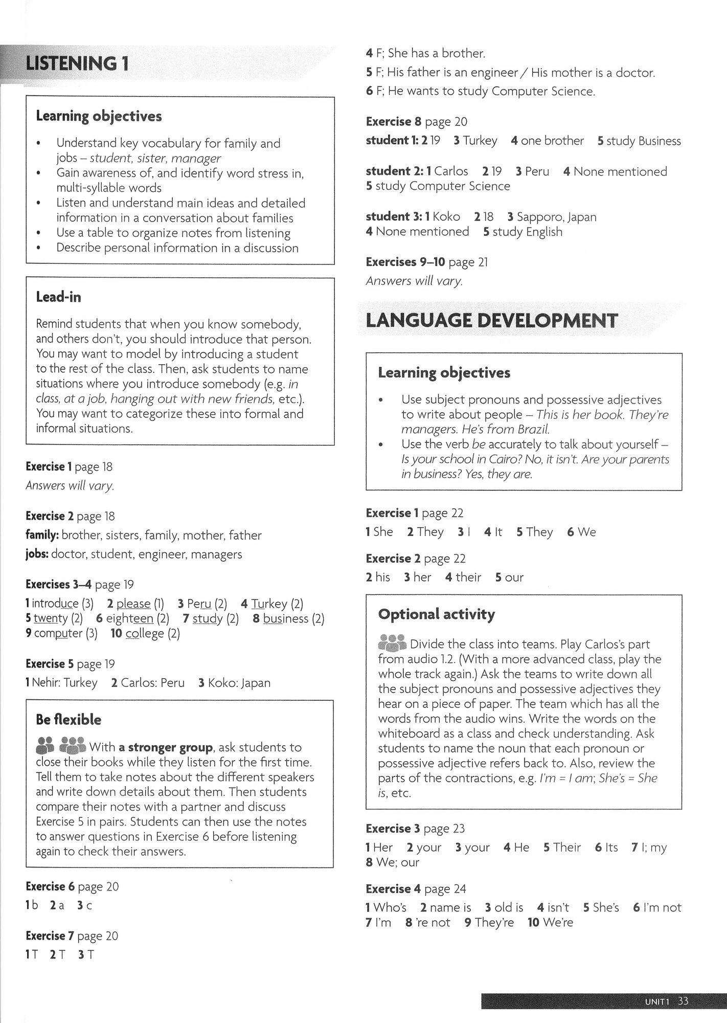 The Teacher's Manual and Development Pack conveniently provides answer keys, additional activities, teacher support and professional development in one single book. Your teaching is supported with flexible lesson plans and additional activities for the purposes of both extension and differentiation. Learning Objectives are provided for every lesson to ensure you and your students are clear on what you are achieving. Common Students Errors are highlighted to help you support your students. Teacher development material, developing critical thinking skills in your students, is available in every unit. Peer-to-peer teacher training material is downloadable from eSource.