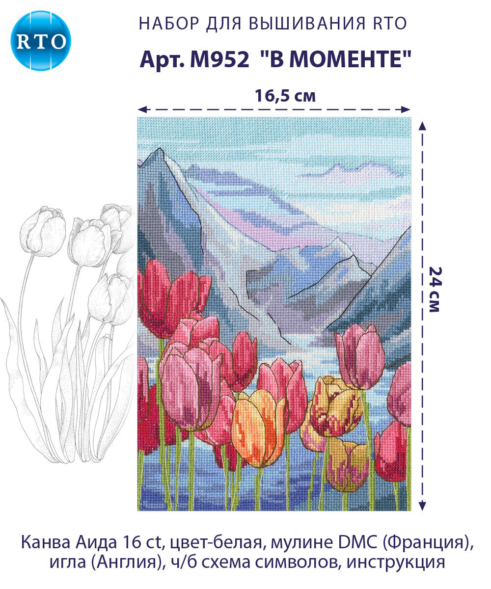Вышивание отвлечет вас от повседневных забот и превратится в увлекательное занятие ! Работа, сделанная своими руками, создаст особый уют и атмосферу в доме и долгие годы будет радовать вас и ваших близких, а подарок, выполненный собственноручно, станет самым ценным для друзей и знакомых. Каждый набор для вышивки крестом от RTO укомплектован качественным материалами: канвой немецкого производства Аида 16 белая; нитками мулине DMC; символьной схемой; иглой; Рамка в комплект не входит, а служит для визуального восприятия товара.