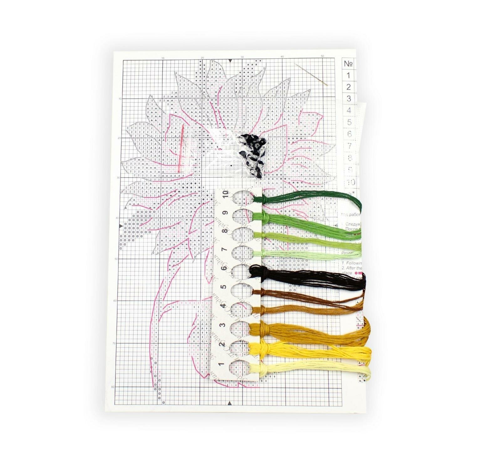 | В набор входит | водорастворимая канва, мулине ПНК им.Кирова 10 цветов разобранные на органайзере, пайетки - 1 цвета, игла, двухцветная символьная схема и подробное руководство по выполнению работы |