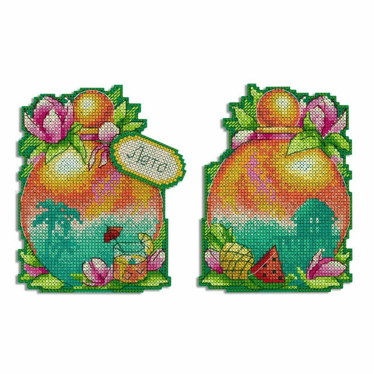 | В набор входит | зелёная пластиковая канва 14 каунта, нитки мулине ПНК им.Кирова 23 цветов, разобранные на органайзере, игла, схема и руководство по вышиванию |