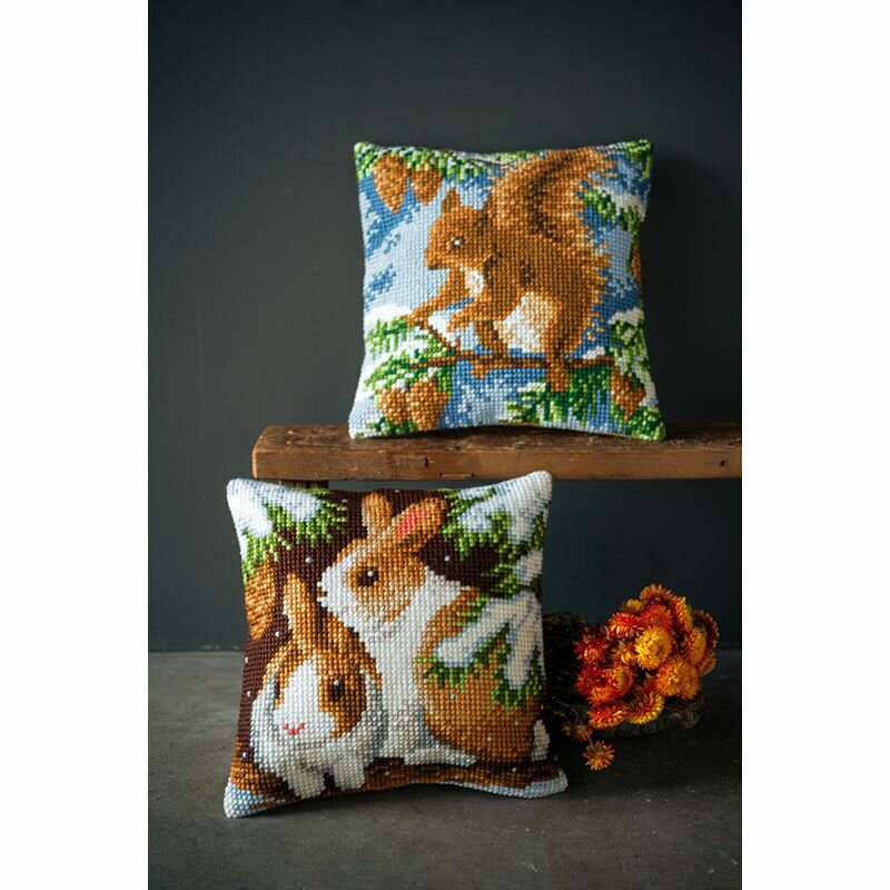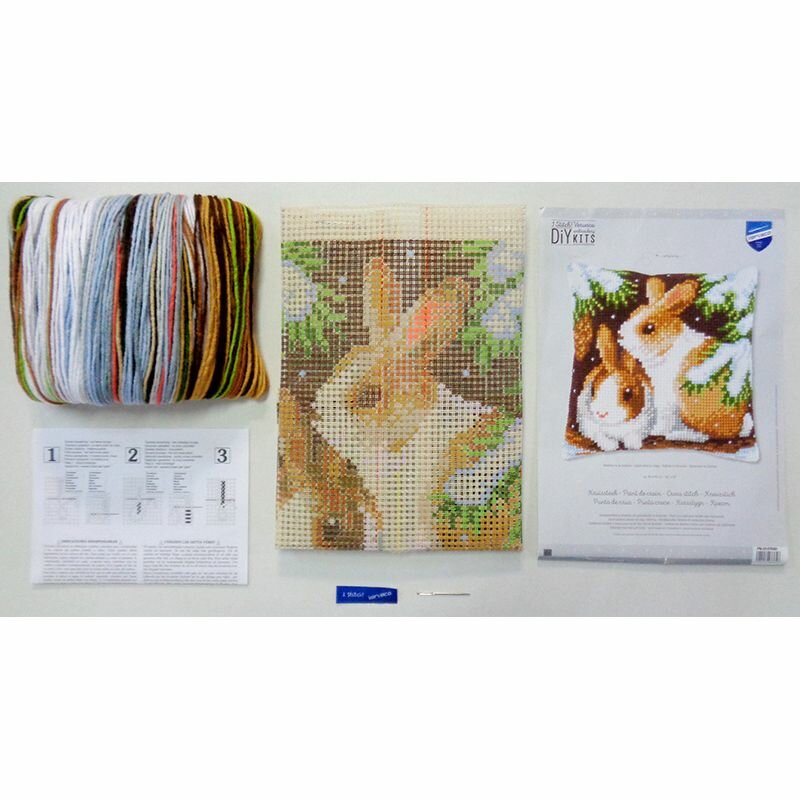 Набор для вышивания подушки Кролики в снегу VERVACO PN-0147640Внимание в наборе есть только лицевая сторона подушки. Обратную сторону вы можете сделать самостоятельно или приобрести фирменный продукт от Vervaco в разделе "Заготовки для создания подушек". Производитель: VERVACOАртикул: PN-0147640Размер: 40 х 40 смКомплектация: страмин с нанесенным цветным рисунком 18 стежков на 10 см 100% хлопок, нити для вышивания 100% акрил, игла, инструкция
