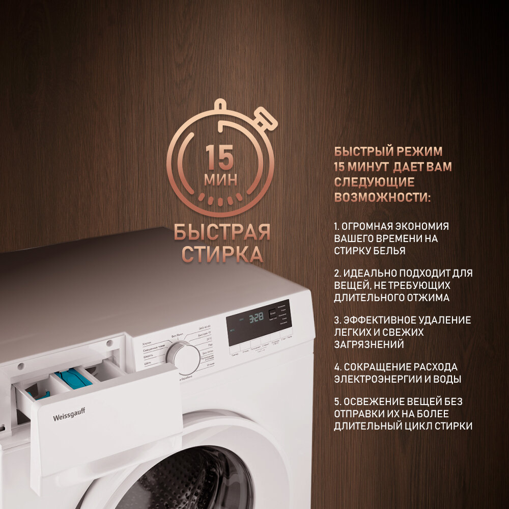 - Тихая, красивая, умная, стирка 15 минут это кайф и всё программы просто класс, довольная….!!!!!!