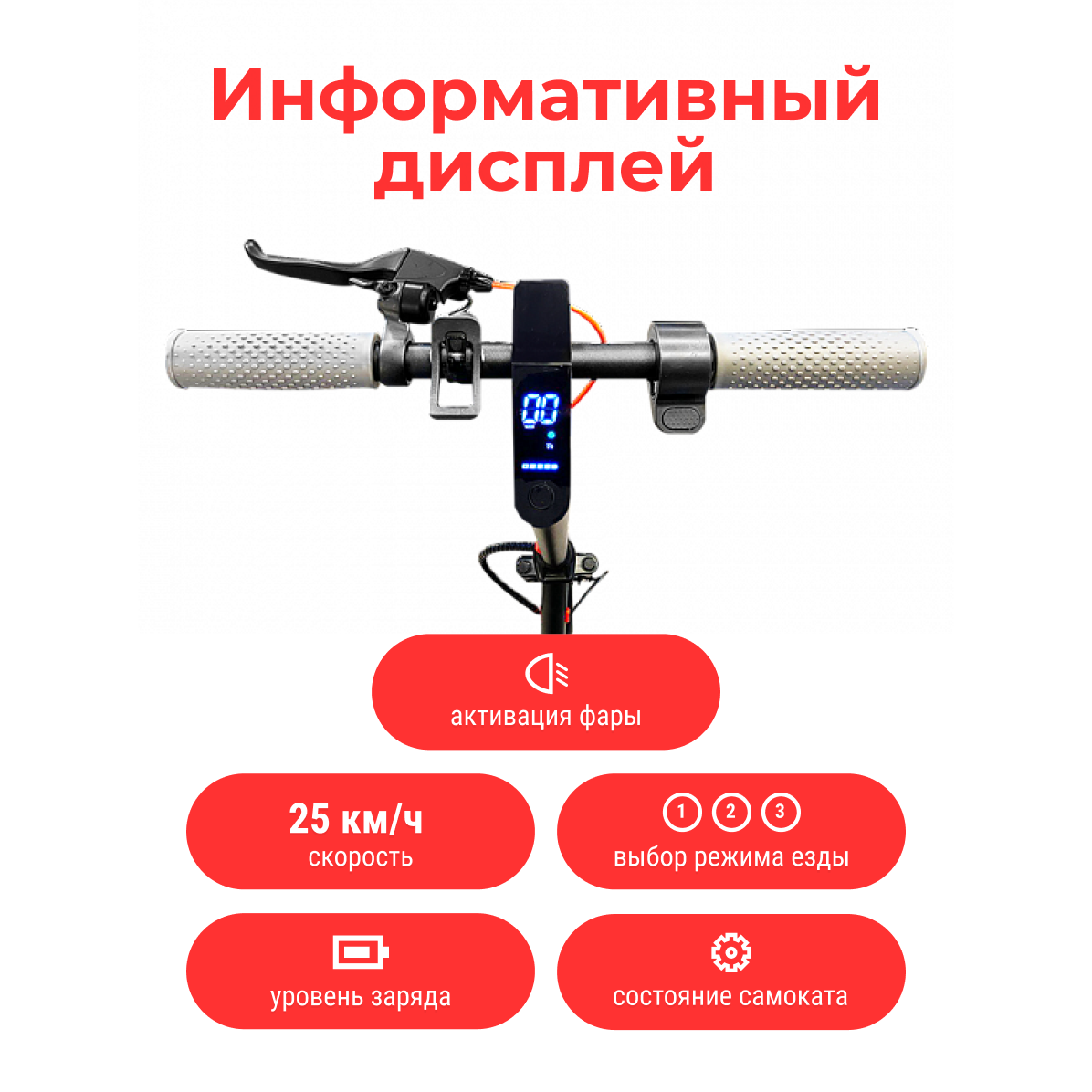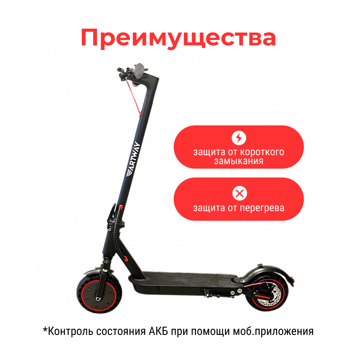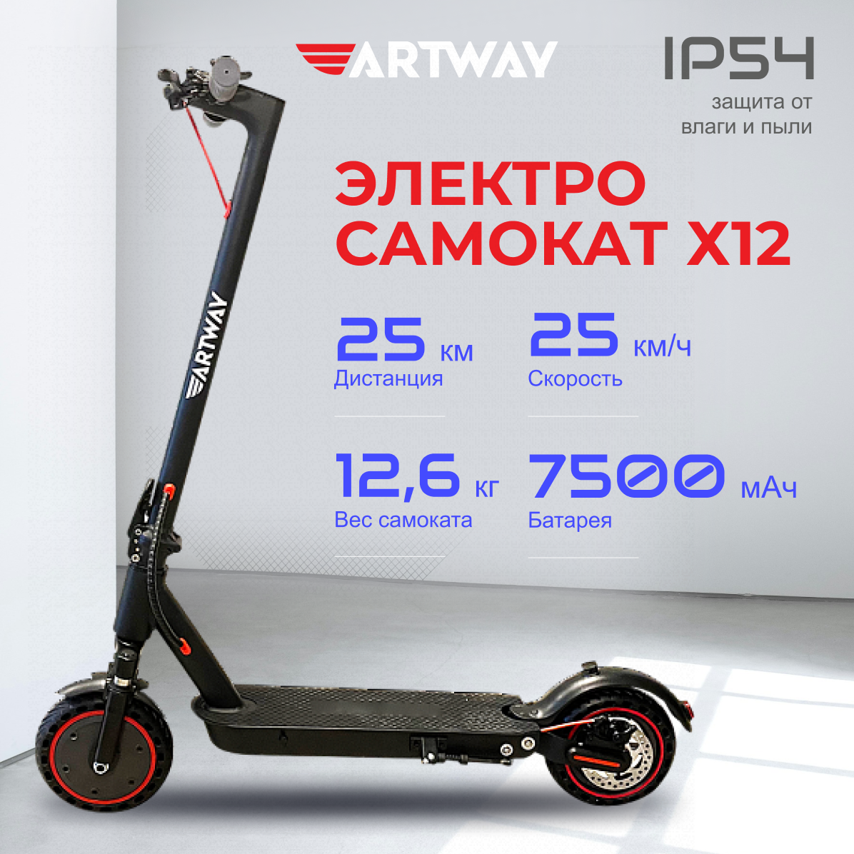 Электросамокат ARTWAY X12 – универсальное транспортное средство для передвижения, как в городских условиях, так и за городом. Производительность и надежность самоката гарантированы благодаря мощному двигателю 350 Вт, который позволяет достигать скоростей до 25 км/ч и преодолевать любые подъемы и неровности. Не прокалываемые колеса 8,5" делают путешествие более комфортным, обеспечивают надежную амортизацию и гасят неровности дороги на пути следования, а электрический и дисковый тормоза обеспечивают безопасность при торможении. Отличная влагозащита IP54, установленная на производстве, позволяет эксплуатировать этот самокат даже в сырую и дождливую погоду. Дождь, лужи и брызги ему не почем. Одна из главных особенностей электро самоката – большой пробег до 25 км на одном заряде благодаря ёмкой аккумуляторной батарее с емкостью 7500 мАч. Оставайтесь на связи и контролируйте состояние вашего транспортного средства с помощью мобильного приложения, которое можно подключить к своему телефону через Bluetooth. Электросамокат двухколесный оснащен яркой LED фарой, которая позволяет ездить в темное время суток и быть заметным на дороге для большей безопасности. Электросамокат взрослый имеет информативный дисплей, подсказки на экране и легкость управления позволяют наслаждаться ездой и при этом находиться в контроле – на дисплее вы увидите скорость движения, уровень заряда батареи и пройденное расстояние. Благодаря регулировке руля, Вы сможете настроить высоту в зависимости от Вашего роста и кататься на самокате с максимальным комфортом. Рукоятки руля выполнены из мягкого противоскользящего материала, ваши руки не соскользнут с рукояток и не вспотеют даже при длительных поездках на самокате. Самокат электрический удобно хранить и переносить, благодаря складной раме. Процесс складывания самоката займёт всего несколько секунд. Самокат не занимает много места в квартире и легко помещается в багажник практически любого автомобиля. Данная модель подходит как взрослым, так и детям от 14 лет. Безопасность и удобство вождения – главные преимущества электросамоката, который станет незаменимым помощником в повседневных поездках на работу, в магазин или прогулки на природе.
