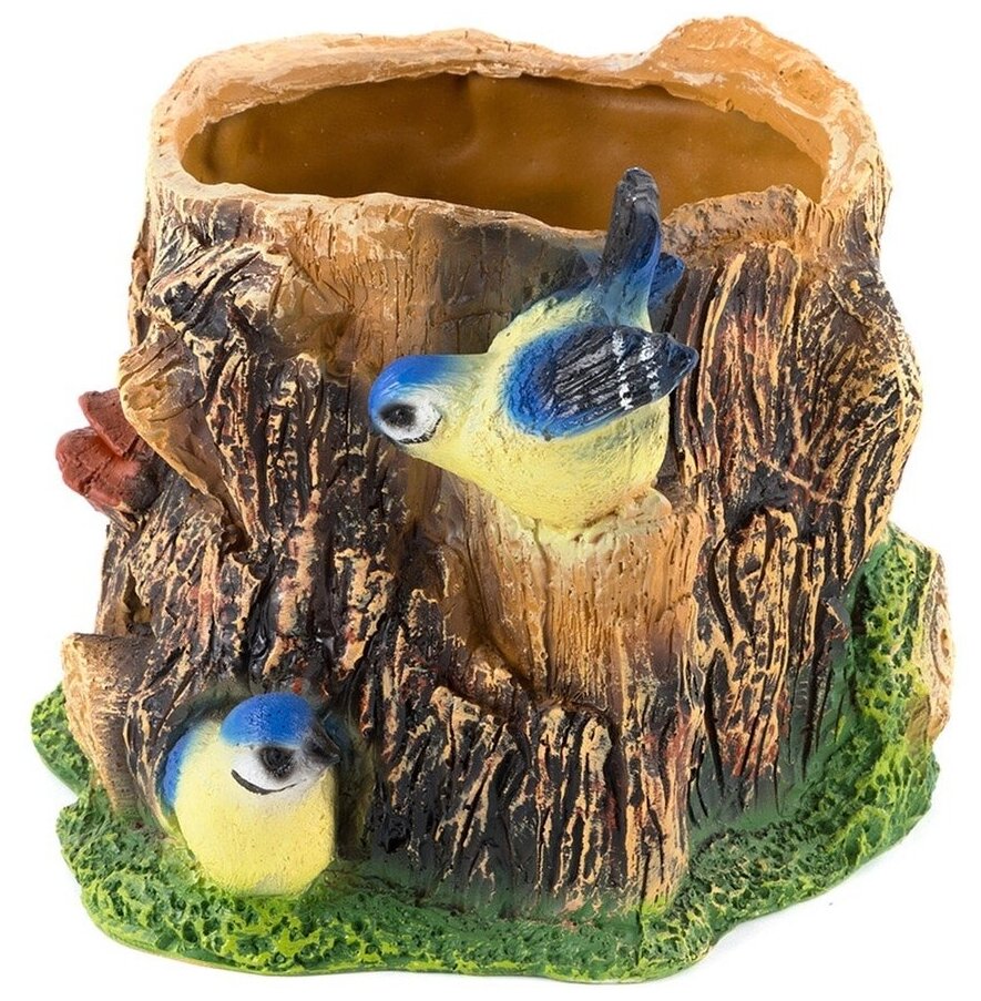 фигура садовая Пень с птичками 17см полистоун Park H-17 см, D-16 см