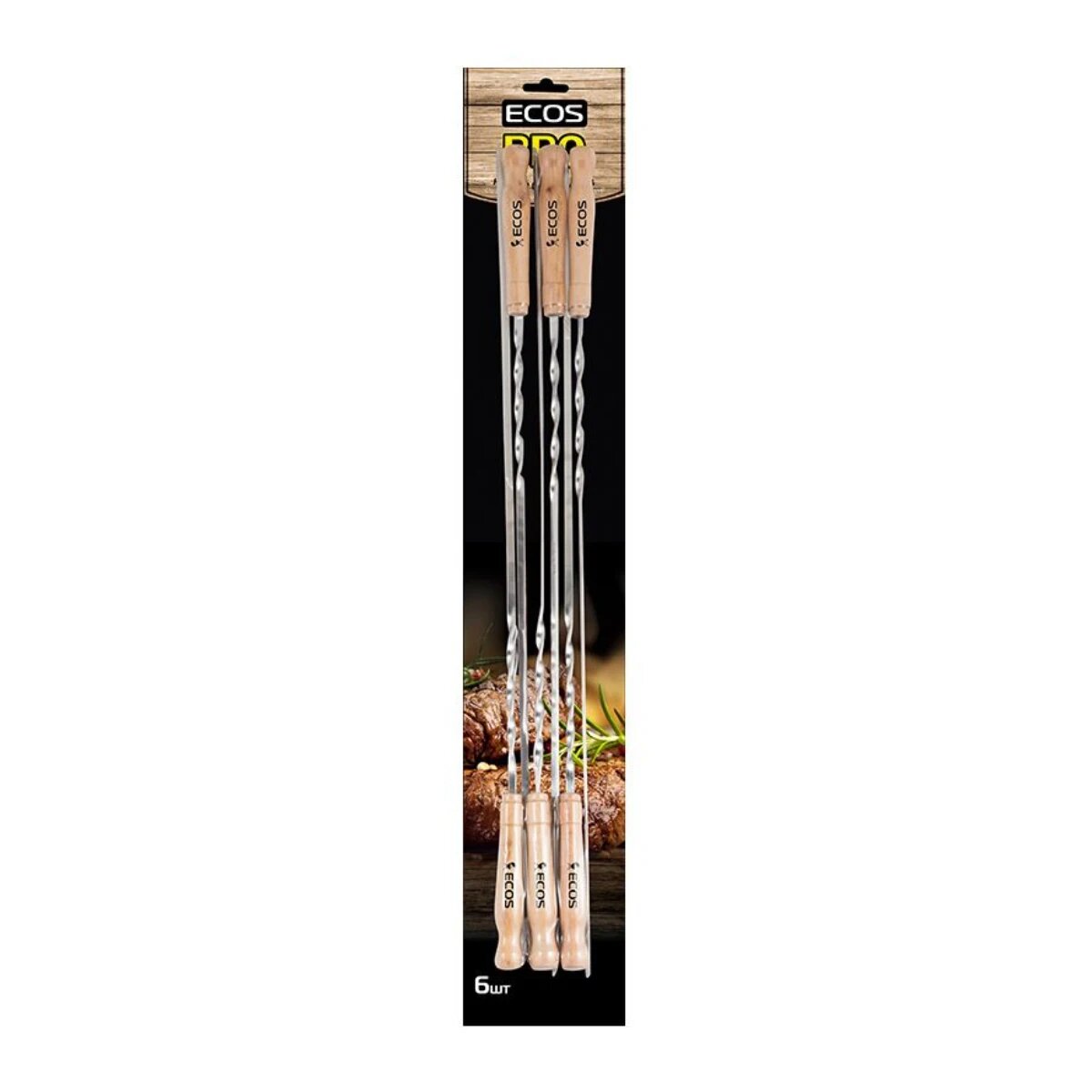 набор шампуров ECOS 6шт 60x15х15см прямые нерж.сталь/дерево 23021D