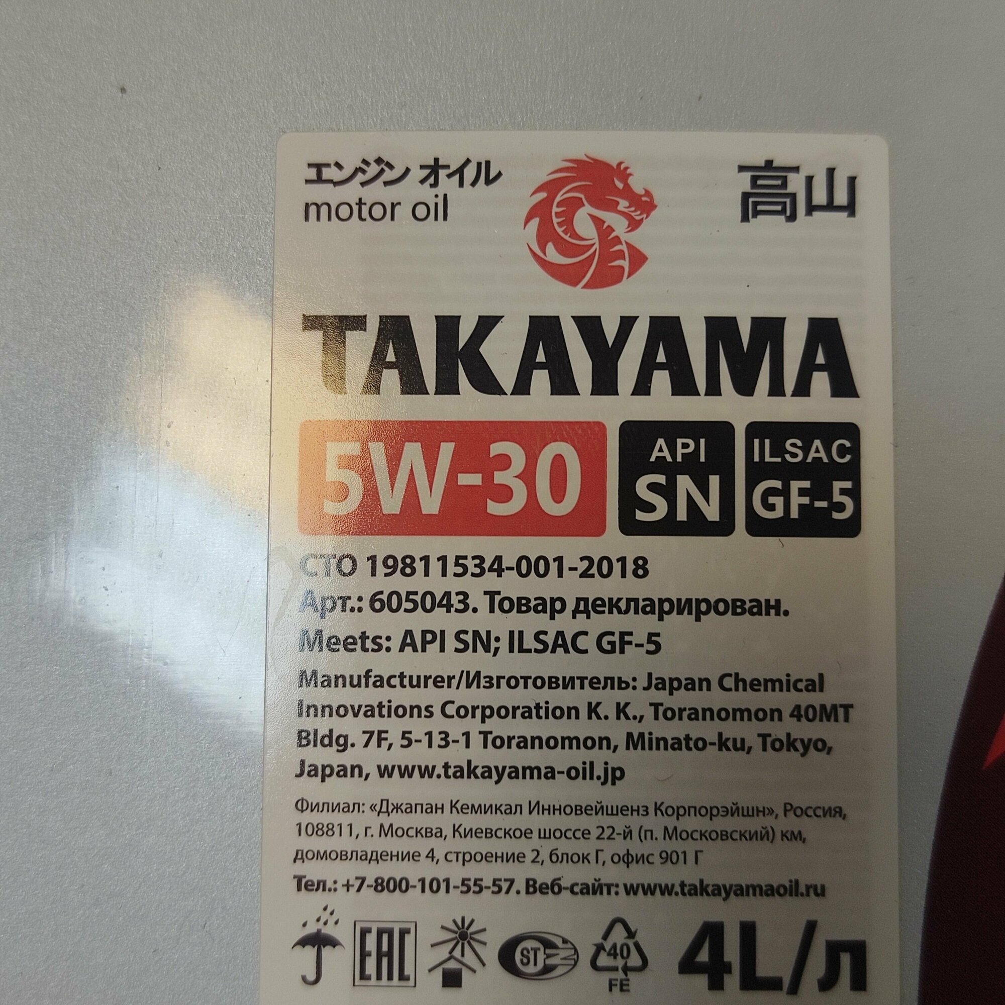 масло моторное TAKAYAMA ILSAC GF-5 API SN SAE 5W-30 4л SAE 5W30 ILSAC GF 5 API SN