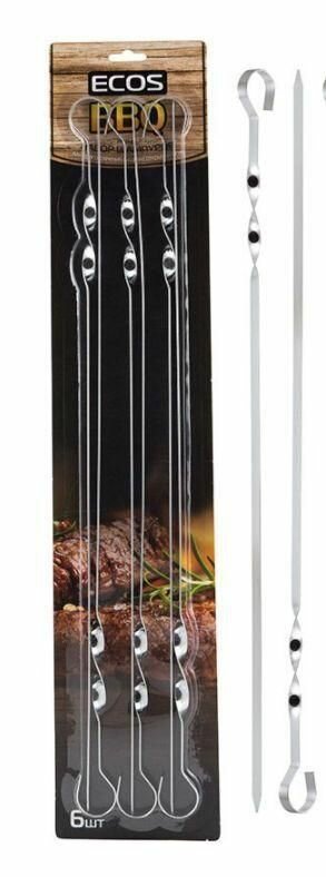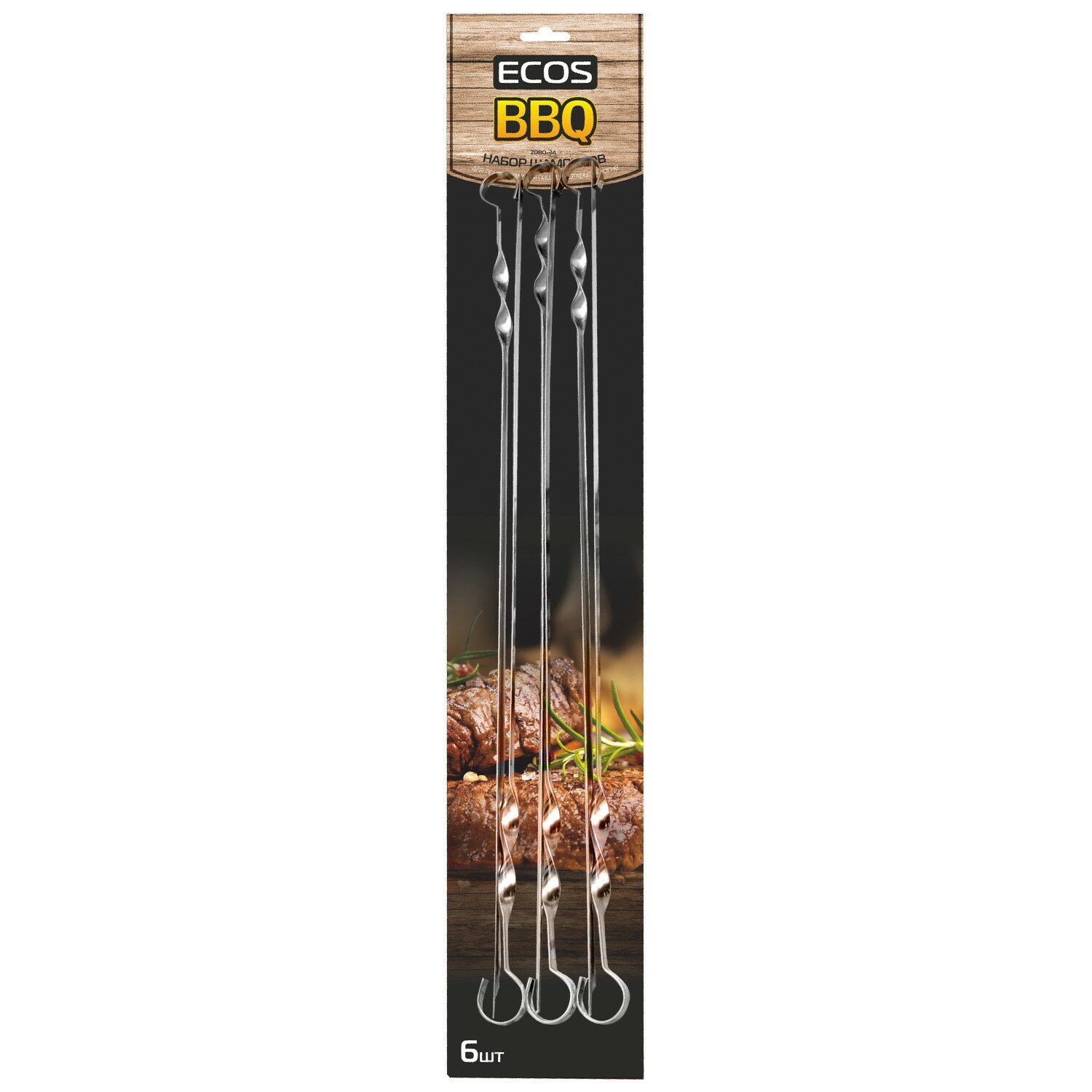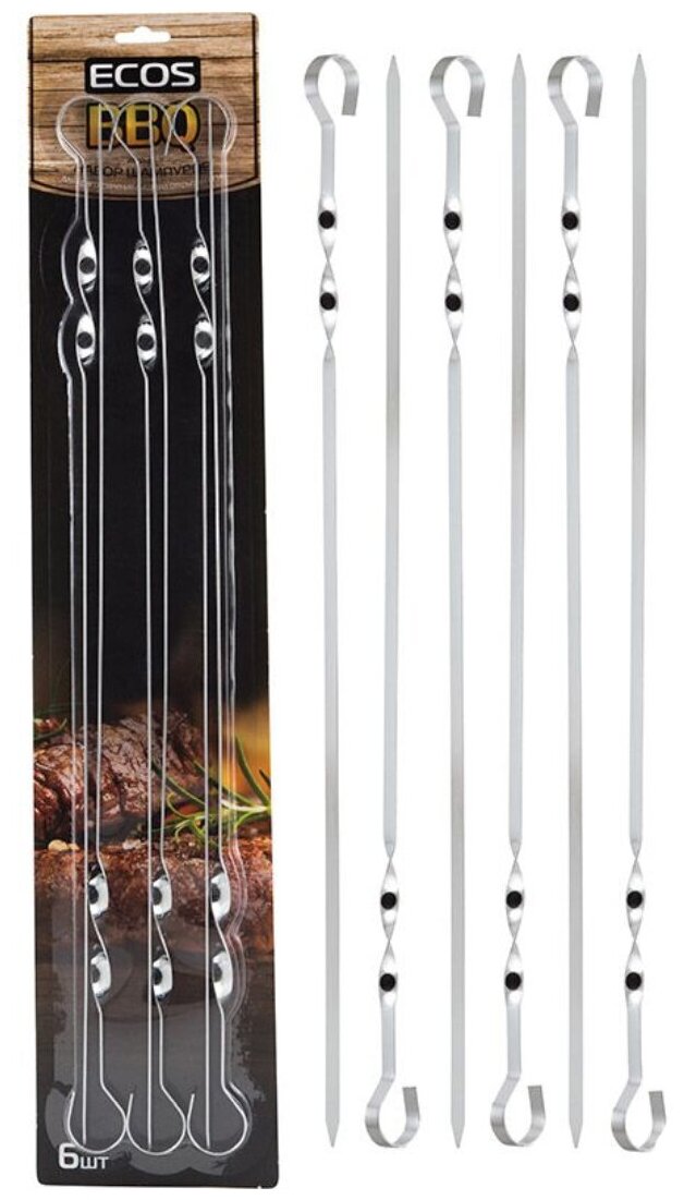 набор шампуров ECOS 6шт 55x1см прямые хром.сталь ZDBQ-34