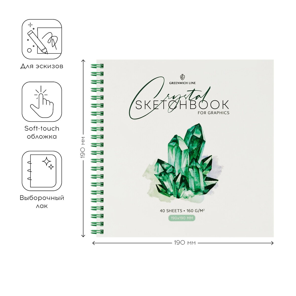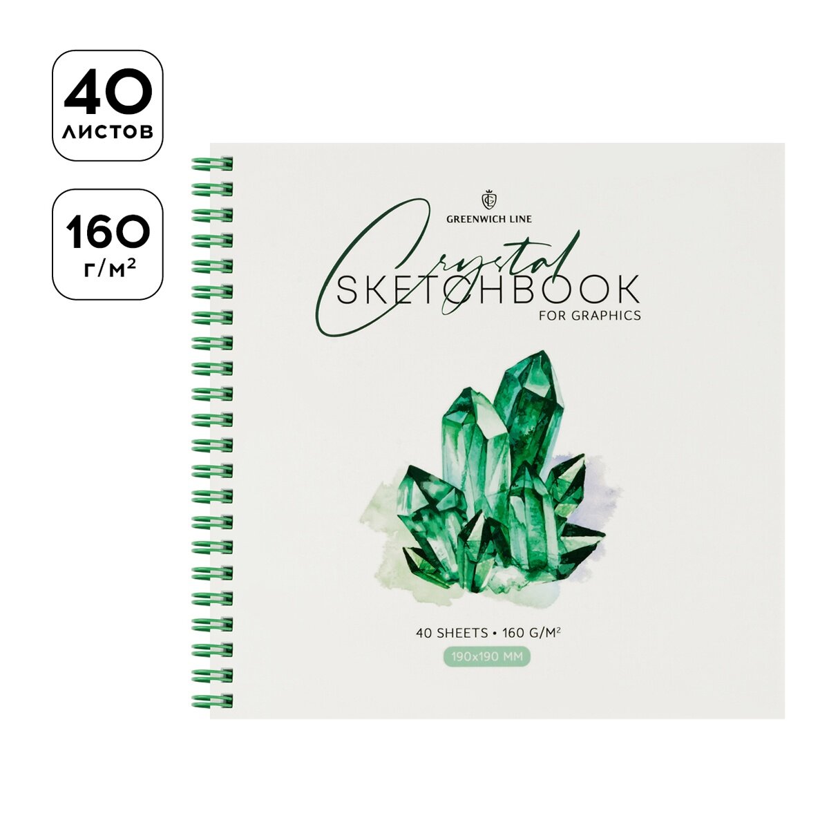 Скетчбук для графики и эскизов Greenwich Line "Crystal. Emerald Stone" 190*190 мм 40 л 160 г (SkBG_45786)
