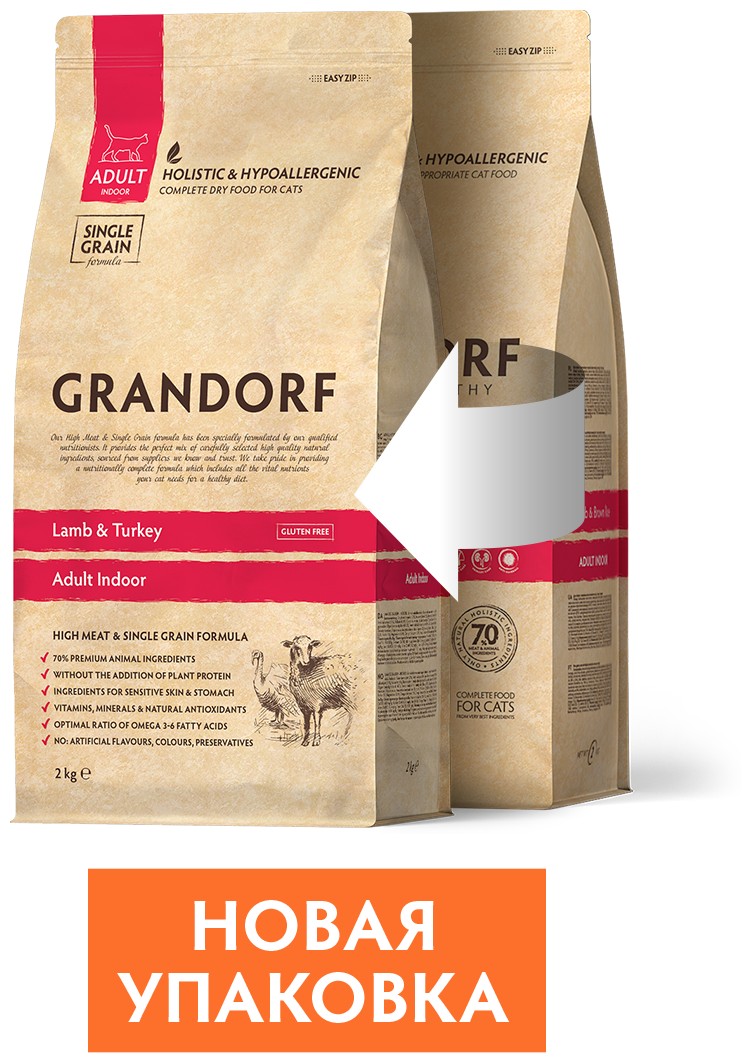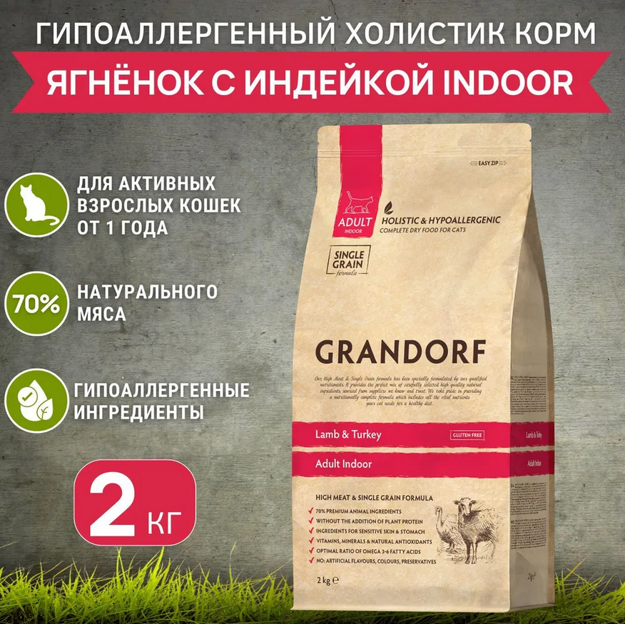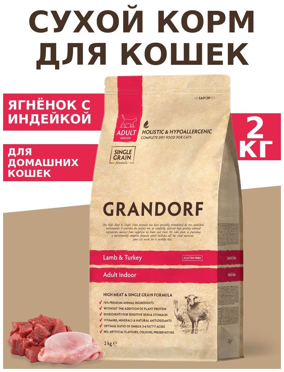 GRANDORF Adult Indoor Lamb&Turkey Корм сух.ягненок с индейкой д/домашних кошек 2кг (51225)