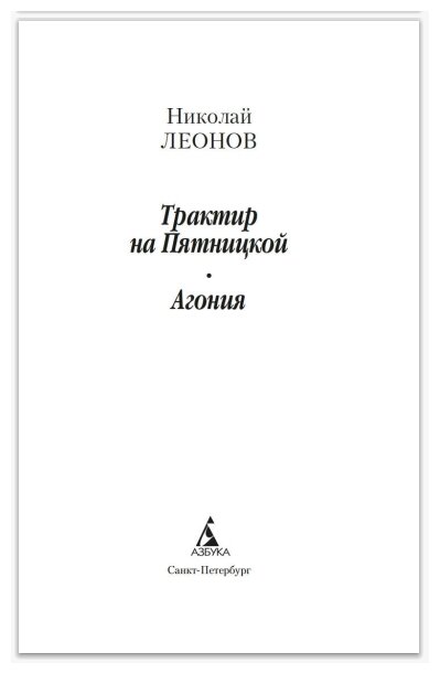 Имя Николая Леонова хорошо известно поклонникам детективного жанра. В 1950–1960-х годах будущий писатель работал в Московском уголовном розыске, а покинув органы МВД в звании капитана, занялся литературным творчеством. «Трактир на Пятницкой» — одно из самых известных его произведений, захватывающая история времен нэпа. В банду преступников-рецидивистов внедряется сотрудник МУРа, но оказывается, что и в стане милиционеров есть бандитский агент. Вычислить шпиона тем и другим очень сложно, и Леонов мастерски сохраняет интригу до самой развязки. В издание включена и повесть «Агония», сюжет которой также разворачивается в Москве 1920-х годов. Как и «Трактир на Пятницкой», повесть «Агония» была экранизирована (фильм «Один и без оружия»), причем сценарии к обоим фильмам, ставшим классикой отечественного остросюжетного кино, были написаны Николаем Леоновым.