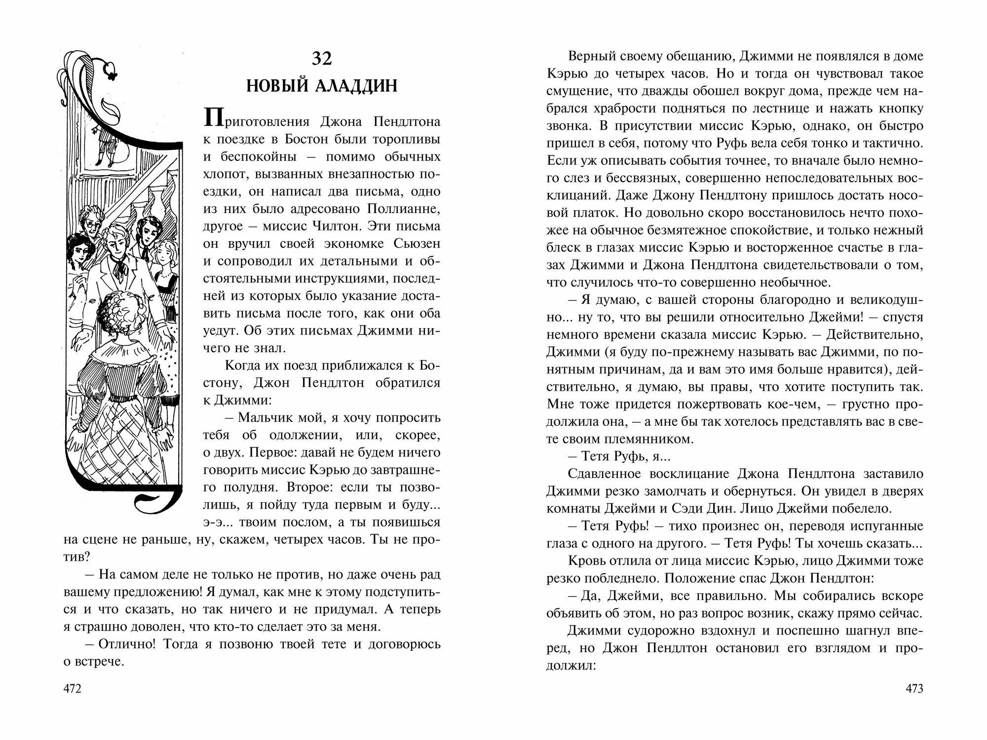 Книгу мне посоветовала знакомая, я взяла, прочитала и получила истинное удовольствие. История доброй чуткой девочки сироты не может оставить равнодушным, местами сюжет был до того трогательный, что я плакала, а сердце билось чаще и так хорошо становилось на душе! Удивительная книга, очень интересная, восстанавливающая веру в добро и справедливость, подойдёт для читателей любого возраста, не смотря но то что написана вроде бы для детей