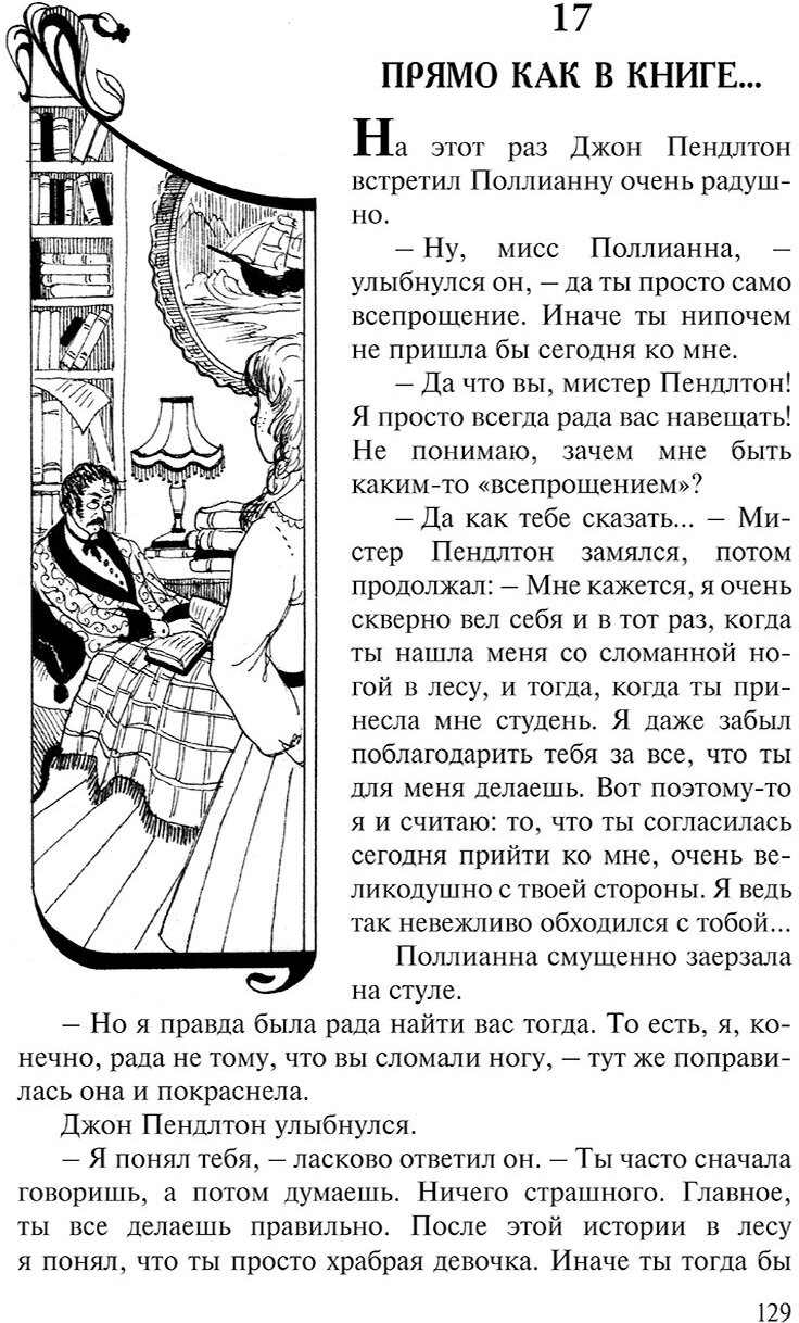 Прекрасный стиль повествования, очень ясно представляешь места, дом, героев, которые встречаются Полианне.