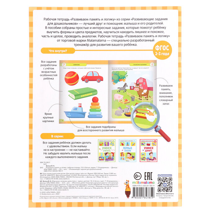 Сервис сравнения цен СкидкаГИД предлагает сравнить цены на товар «Книга: Развивающие задания для дошкольников. Развиваем память и логику (Белых Виктория Алексеевна); Malamalama, 2022»