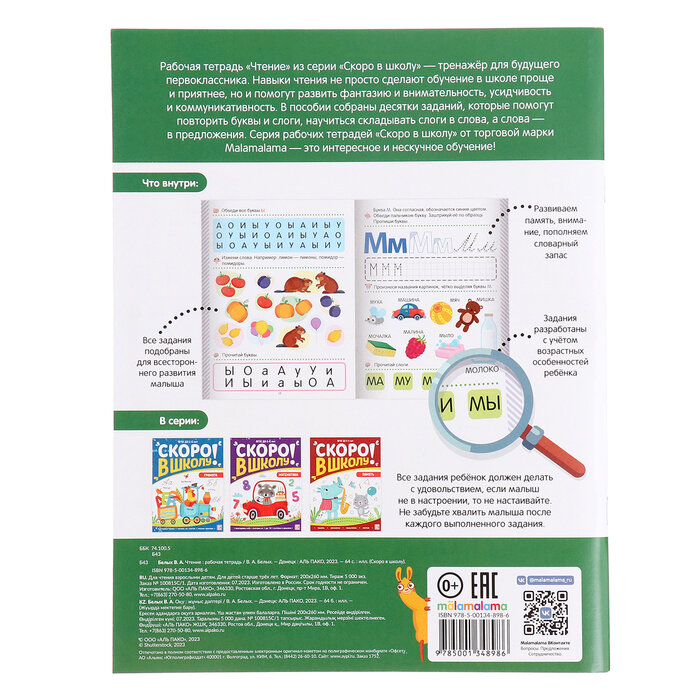 Книга: Скоро в школу! Чтение (Белых Виктория Алексеевна); Malamalama, 2022