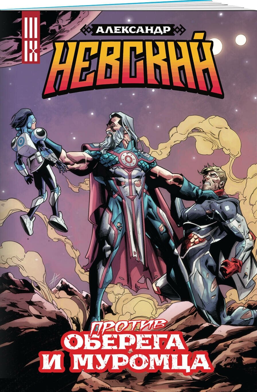 Загадка супергероя Спутника, история обретения Котом Учёным его гениального интеллекта, путешествие в Дивье Королевство, всё это и не только – в комиксе «Александр Невский против Оберега и Муромца», где мы вплотную приблизимся к заключительному акту нашего непредсказуемого спектакля!