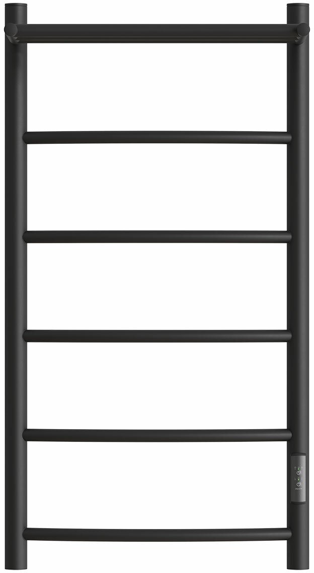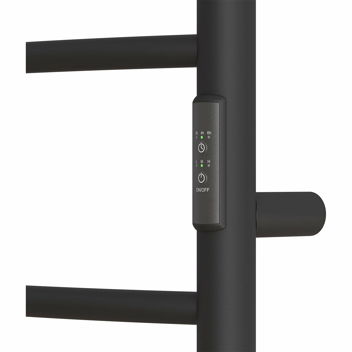 Полотенцесушитель оборудован блоком управления с таймером на 3 режима (2, 4 ,6 часов) и возможностью регулировки температуры (3 температурных режима). Блок управления расположен на правой стойке. Подключение к электросети осуществляется при помощи кабель-вилки или скрытого подключения, которое позволяет легко и просто убрать видимые провода.