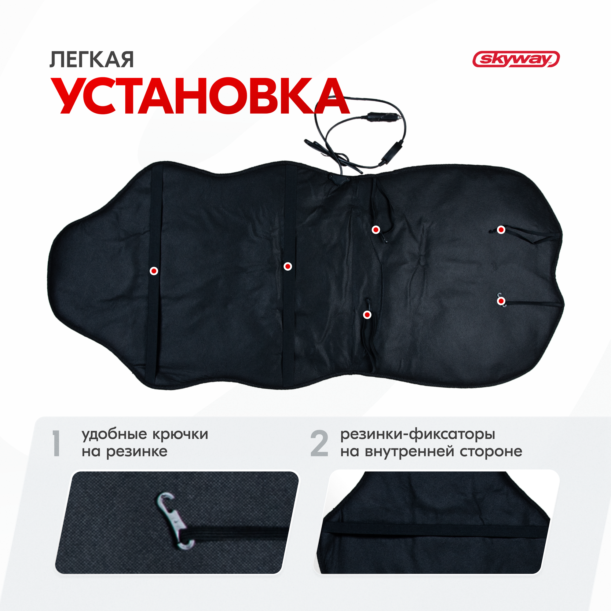 Используя подогрев сиденья Вы почувствуете снижение усталости при управлении автомобилем. Уют и комфорт в зимнее и дождливое время года. Устройство подключается от прикуривателя 12В, провод располагается справа и имеет длину около 150 см. Крепление шнура питания к подогреву надежно защищено. Внутренняя часть накидки имеет противозкользящее покрытие, благодаря которому накидку не нужно долго устанавливать и закреплять. Подключение подогрева сидения к питанию от сетей автомобиля производится только после запуска транспортного средства.