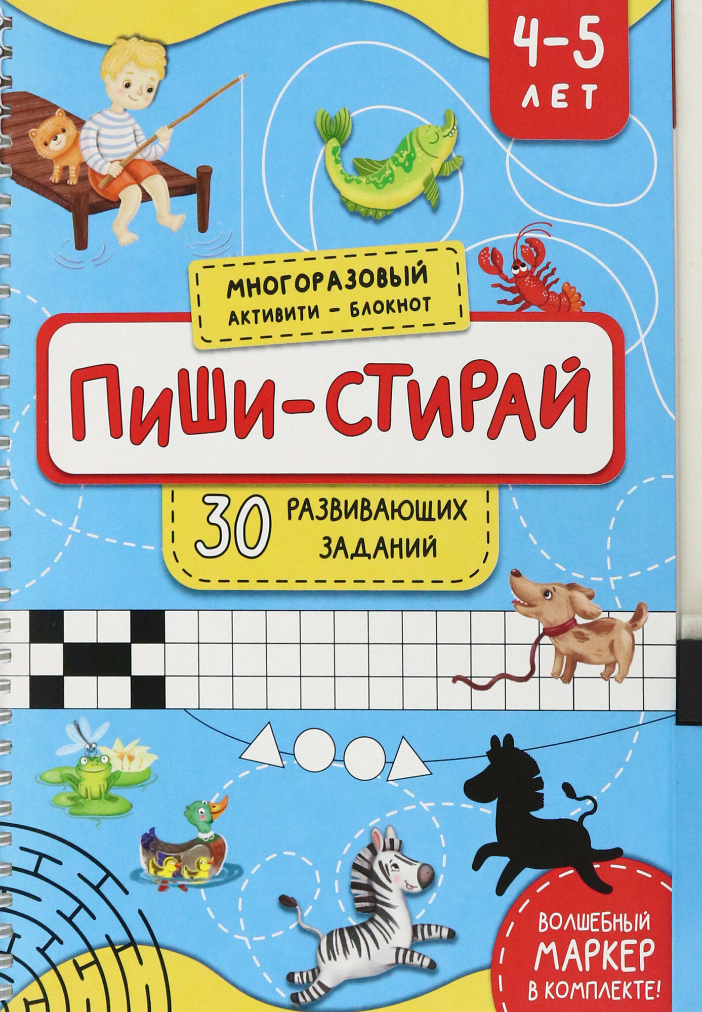 Многоразовая развивающая рабочая тетрадь пиши и стирай для детей 4-5 лет . В этом учебно-методическом пособии 63 задания для ребенка 4 -5 лет, которые направлены на всестороннее развитие детей. В игровой форме ребенок познает математику, окружающий мир, развивает творческие навыки. Рабочая тетрадь пиши стирай с маркером подойдет как первое пособие для детей от 4 лет.