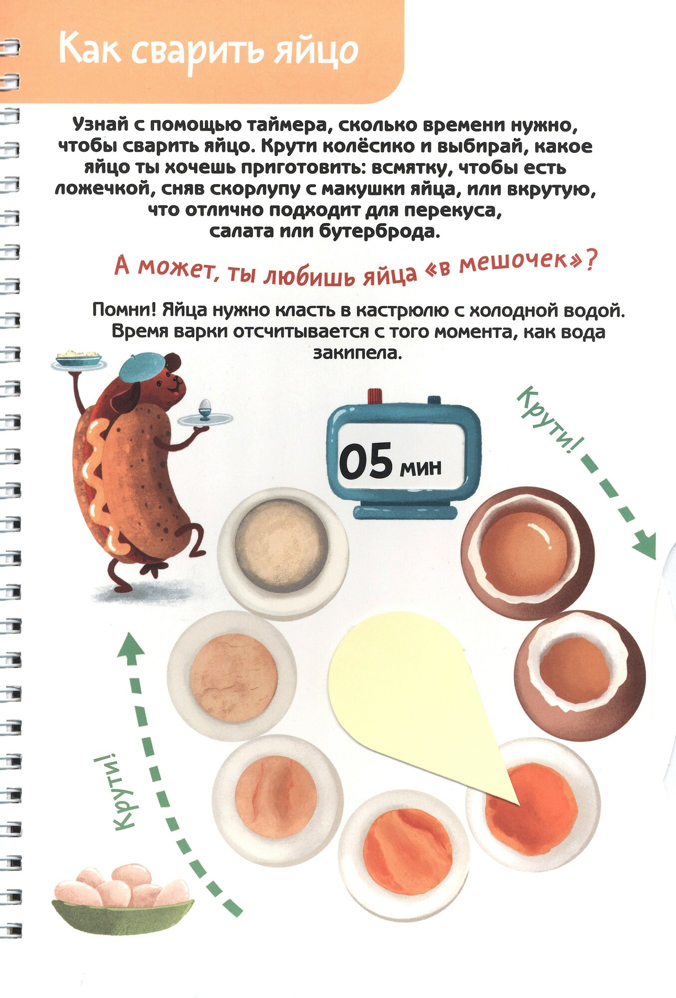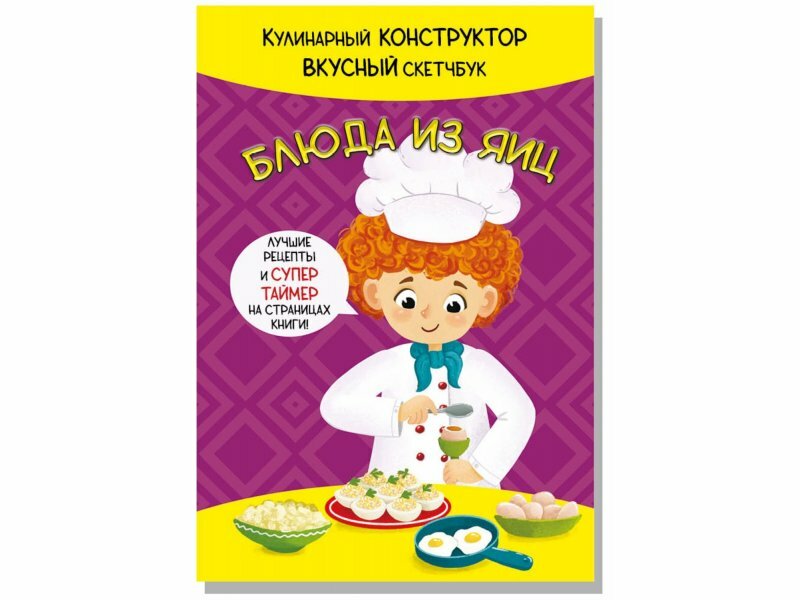 Детская поваренная книга и блокнот для записи рецептов в одном издании. Уникальные кулинарные конструкторы помогут каждый день создавать новое блюдо из продуктов, которые есть под рукой. Фантазируй, записывай лучшие рецепты и рисуй любимые блюда на страницах скетчбука. Лучшие рецепты из яиц и супер таймер!
