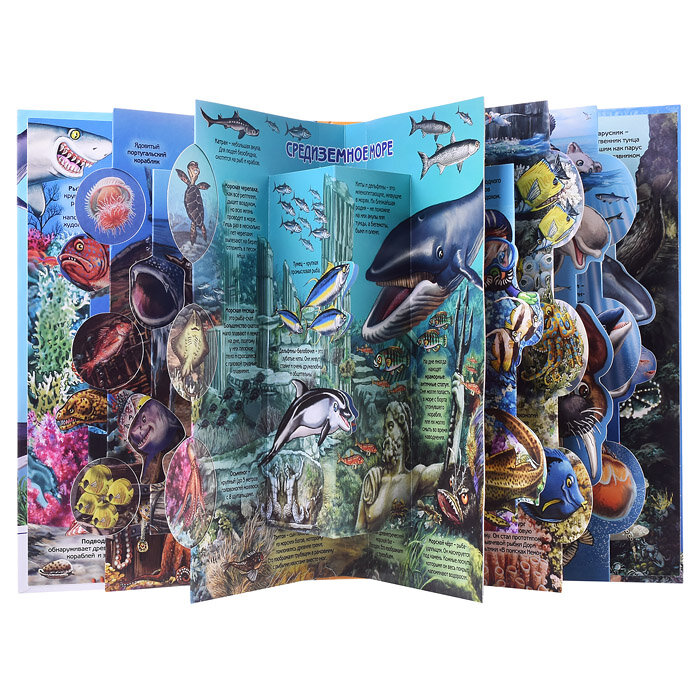 Мировой океан занимает огромную часть нашей планеты. Только представьте, сколько растений и животных скрывается в его глубинах! А ещё моря и океаны хранят невероятные тайны цивилизаций и культур. Как выглядят обитатели морских глубин, какие клады и сокровища они стерегут? Ответы на эти вопросы на страницах нашей необычной книги. Она напоминает карусель с объемными картинками, которую можно раскрыть на 360 градусов!