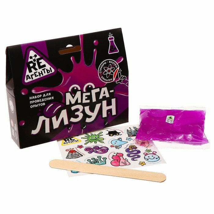 Мега-Лизун фиолетовый Re-Агенты – это отличное развлечение для юных экспериментаторов.В состав набора входят:круглый контейнер для смешивания ингредиентов;реактивы и краситель в полиэтиленовых пакетиках;деревянная палочка;стикеры-картинки.Руководствуясь инструкцией, смешайте в контейнере имеющиеся в комплекте химические вещества. Яркий фиолетовый лизун готов для игры. Он эластичен, мягок, имеет приятную текстуру и станет отличной жвачкой для рук.Простой опыт поднимает настроение, вызывает интерес к изучению химии, расширяет кругозор.Соберите разные наборы серии и устройте дома мини-лабораторию!Параметры товара: упаковка – картонная коробка 155х130х35 ммРекомендованный возраст: от 8 лет