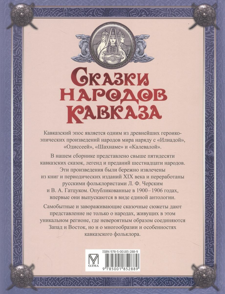 В нашем сборнике представлено свыше пятидесяти кавказских сказок, легенд и преданий шестнадцати народов. Эти произведения были бережно извлечены из книг и периодических изданий XIX века и переработаны русскими фольклористами Л. Ф. Черским и В. А. Гатцуком. Опубликованные в 1900-1906 годах, впервые они выпускаются в виде единой антологии.