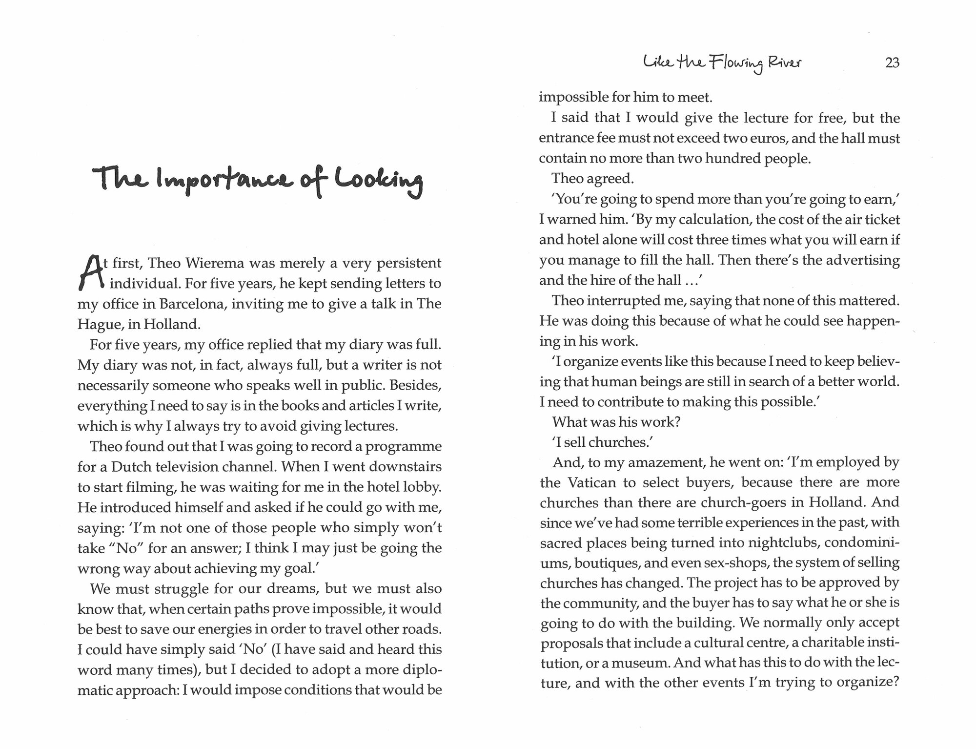 ‘Like the Flowing River’ includes jewel-like fables, packed with meaning and retold in Coelho's inimitable style. Sharing his thoughts on spirituality, life and ethics, Paulo touches you with his philosophy and invites you to go on an exciting journey of your own.