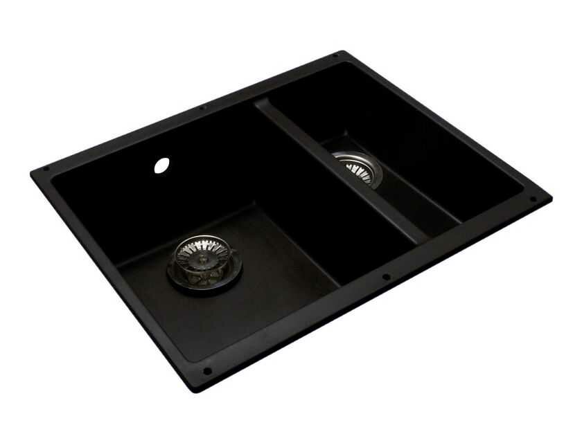 Гранитная мойка U.2 - модель предназначенная для подстольного монтажа. Прямоугольная модель с большой чашей глубиной 19 см и малой чашей глубиной 13 см. Малая чаша предназначена для удобства эксплуатации, а так же в нее можно установить измельчитель пищевых отходов. Прочный металлический крепеж, установленный на мойке, обеспечивает надежную её фиксацию в столешнице. Минимальная толщина стенок мойки - 8 мм. Мойка укомплектована сливной арматурой.