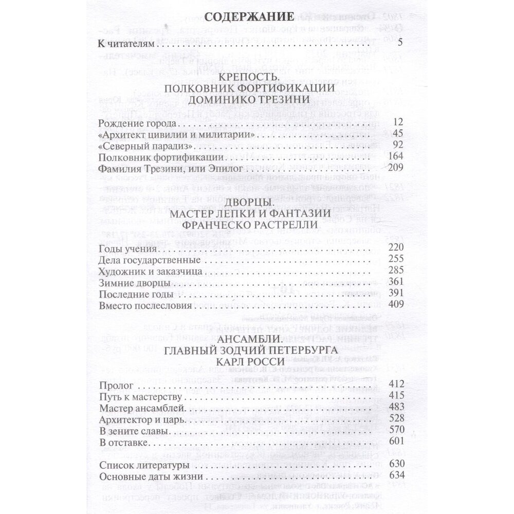 Книга известного российского историка и искусствоведа Юрия Максимилиановича Овсянникова (1926—2001) посвящена творцам одного из прекраснейших городов мира — Санкт-Петербурга. В ней увлекательно и вместе с тем строго документально рассказывается о судьбах трех великих зодчих, тех, кто сотворил неповторимый облик Северной Венеции, — Доминико Трезини (1670—1734), Франческо Бартоломео Растрелли (1700—1771) и Карле Росси (1775—1849). Построенные ими замечательные здания и ансамбли — Петропавловская крепость, Смольный собор, Зимний дворец, Михайловский дворец (ныне Русский музей), Александринский театр, здания Сената и Синода — не одно столетие украшают улицы и площади Петербурга. А потому и сам этот город стал одним из героев книги, выходящей ныне в серии «Жизнь замечательных людей».