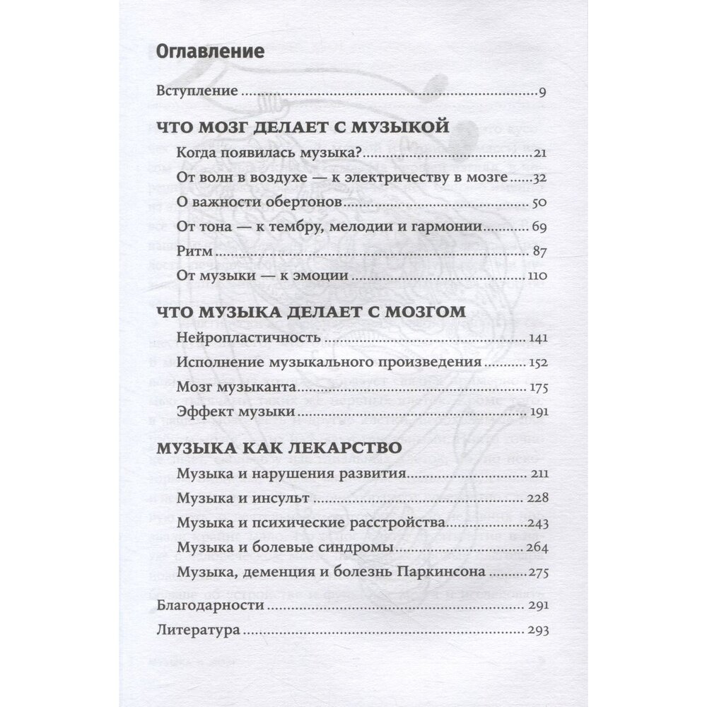 Отличная книга, на примере музыки рассказывающая о работе мозга. Авторы вели повествование с обеих сторон: как и на каких уровнях обрабатываются звуковые сигналы и как занятия и прослушивание музыки влияют на нейропластичность и жизнь человека. В книге приводятся ссылки на большое количество исследований. Думаю, книга подойдет людям, которые интересуются музыкой и/или нейробиологией, строением человеческого организма. Излагаемый материал понятен и не требует дополнительного уровня подготовки к прочтению.