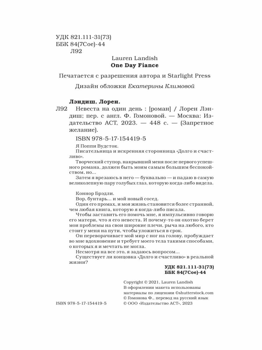 Книга: Невеста на один день (Лорен Лэндиш); Издательство АСТ, 2021