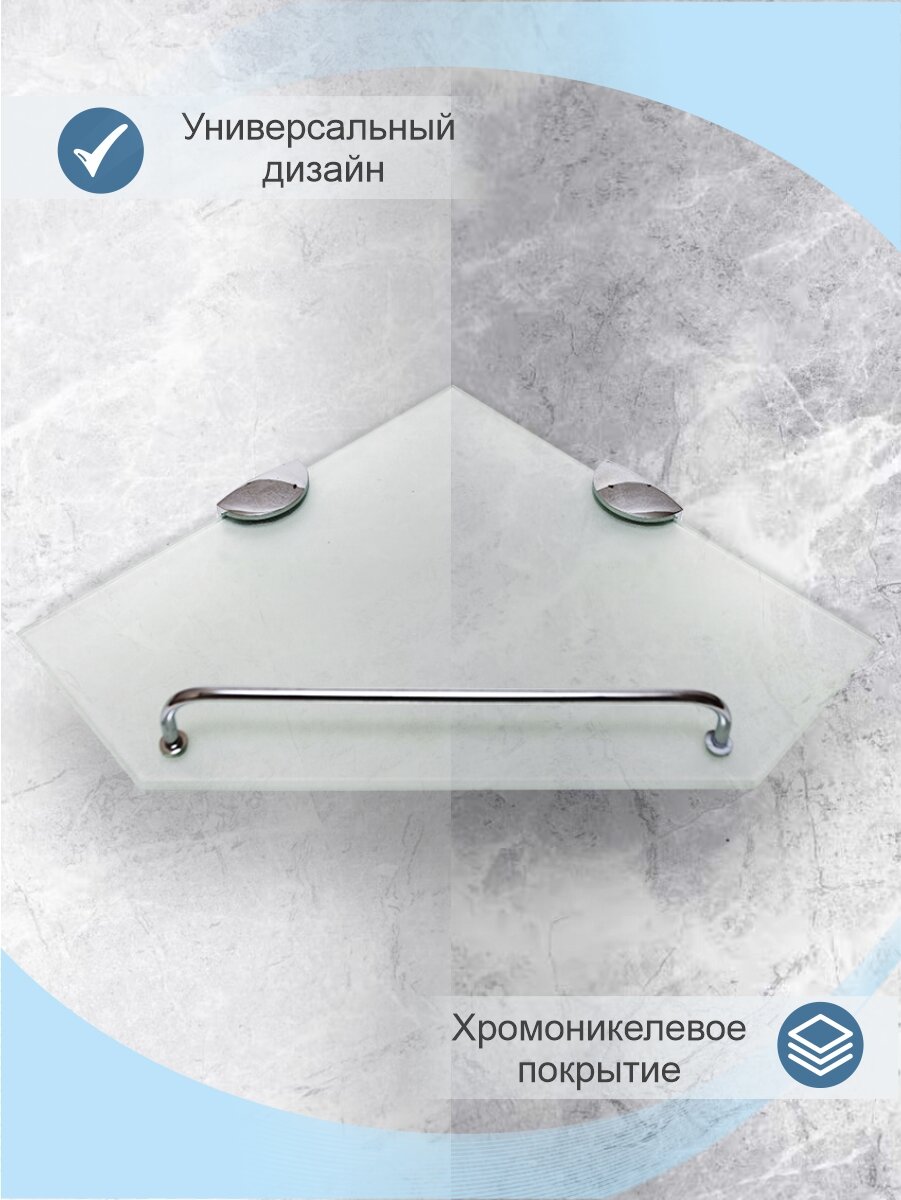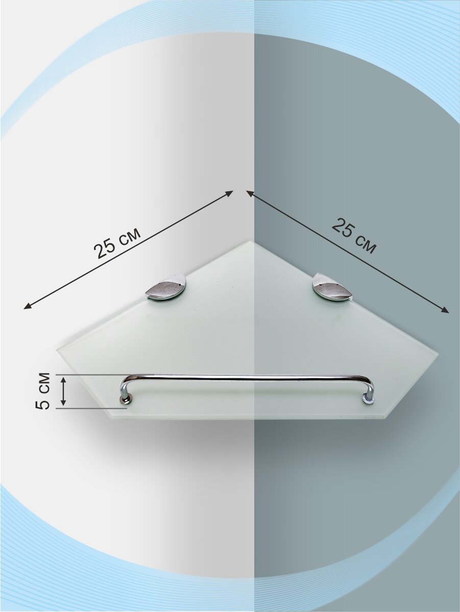 Подвесная стеклянная полка с металлическим креплением легко впишется в любой интерьер ванной комнаты. Компактна и эргономична. Полка выполнена из прочного стекла и имеет металлический бортик для предотвращения падения предметов. Размеры 25х25х5 см.