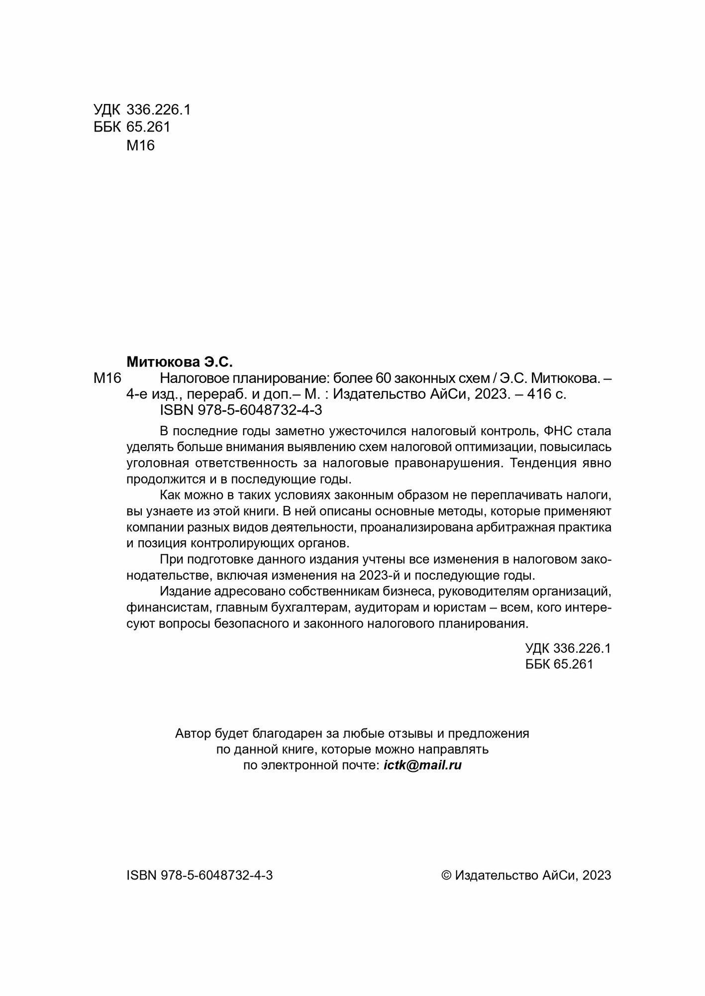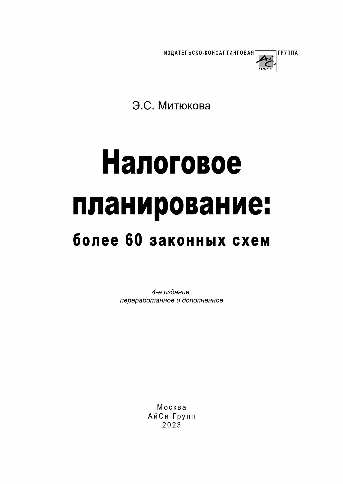 Налоговое планирование. Более 60 законных схем (Митюкова Эльвира Сайфулловна); АйСи Групп, 2023