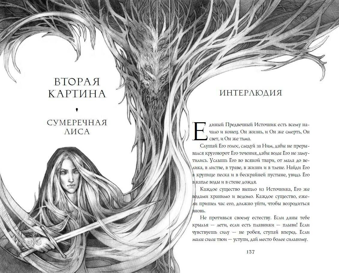 язык богат и красочен, словно парчовый наряд молодой санторийки. Неологизмы, живописные твари, магия и политические ритуалы, религия и особые песни, потрясающие иллюстрации Евгении – все манит в кущи.