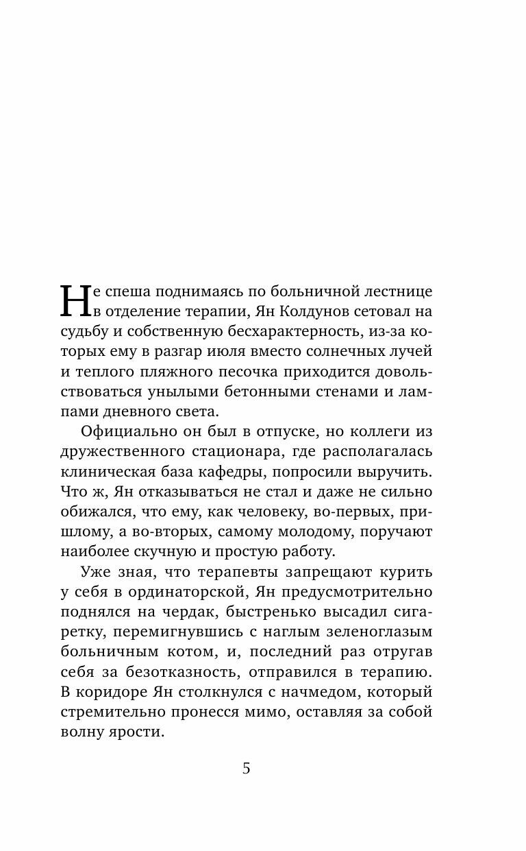 Книга насыщена медицинскими подробностями, которые прекрасно удаются автору - практикующему хирургу. И все-таки речь не о скорой помощи в привычном смысле: главный герои выручают друг друга, помогают и даже спасают от ошибок. Сюжет постоянно кажется предсказуемым, но так же постоянно таковым не является. Казалось бы, чего ждать от сухаря Константина Петровича? Уж точно, не того, на что способен рубаха-парень Ян Колдунов (между прочим, его ровесник, хотя по именам не скажешь). А в итоге именно Константин стряхивает все условности и поступает не \"как правильно\", а просто по-человечески. Ян же, бедняга, мечется и отвергается всеми своими дамами, однако жалеть его не будем - во-первых, еще до этого вышли книги о Яне повзрослевшем, и мы знаем, что в одиночестве он не остался; а во-вторых, у него всегда есть верная любимая - его работа.