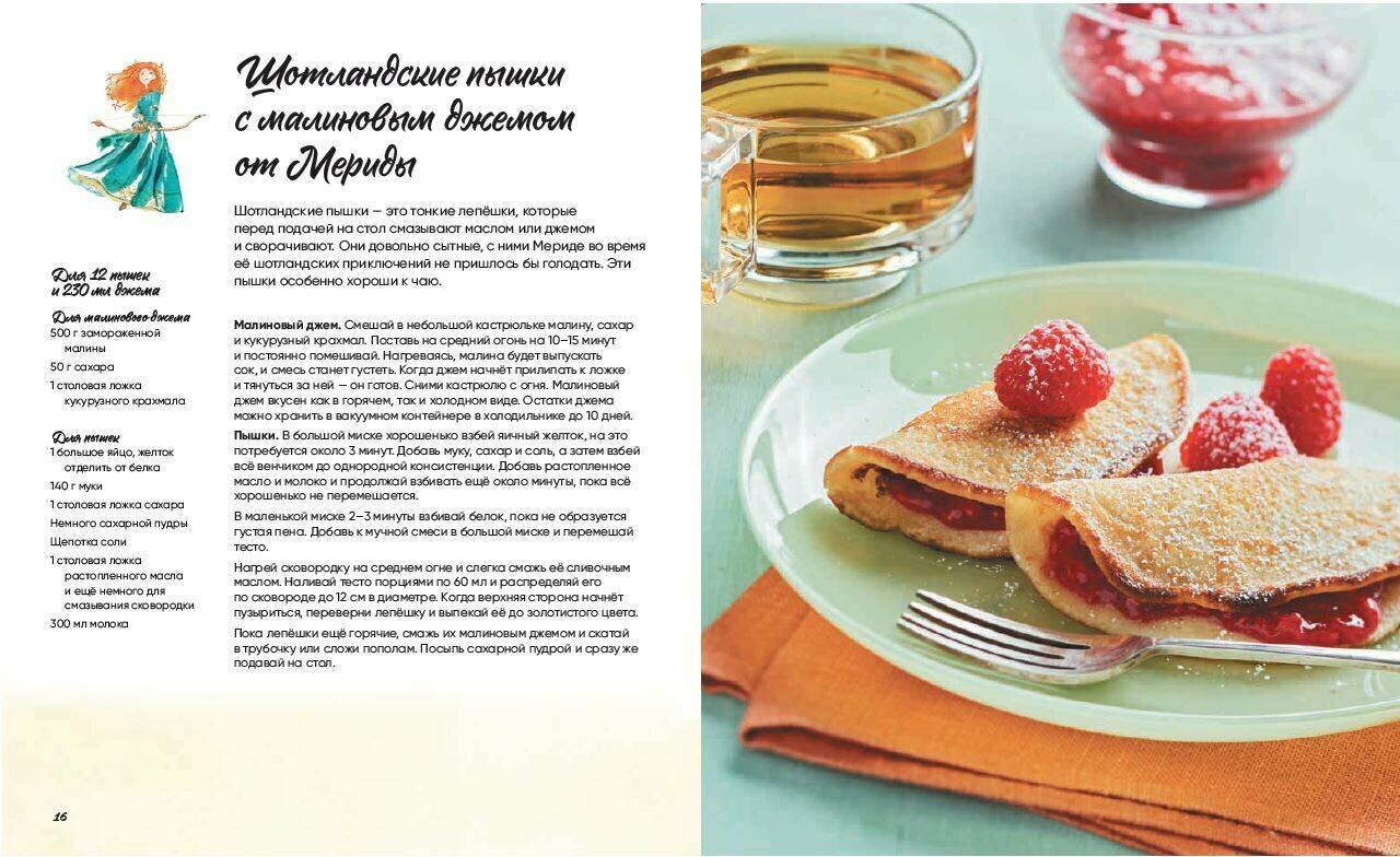 Обычный сборник рецептов, не имеющий никакого отношения к мультфильмам Disney. У каждого рецепта есть изображение принцессы, но выбраны они, судя по всему рандомно. Нет привязки ни к самому мультфильму, ни к принцессе. Нет какой-то дополнительной информации или интерсных иллюстраций.