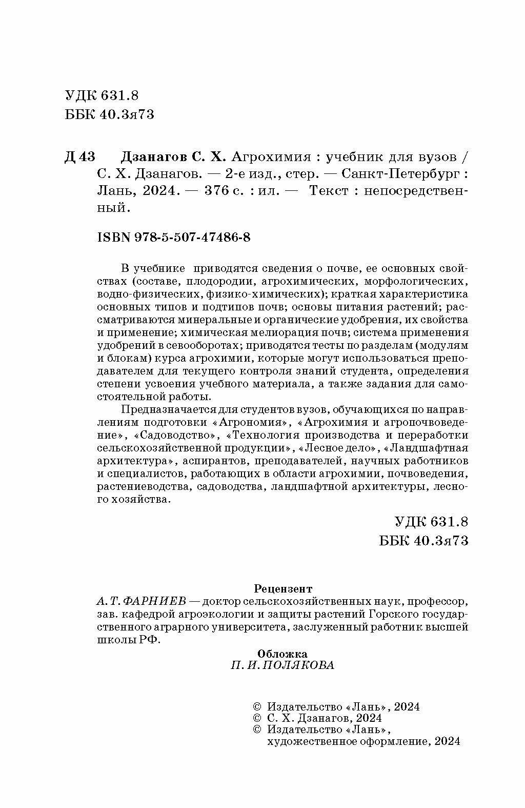Агрохимия. Учебник для вузов (Коллектив авторов); Издательство ЛАНЬ, 2023